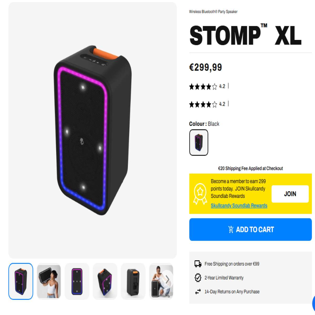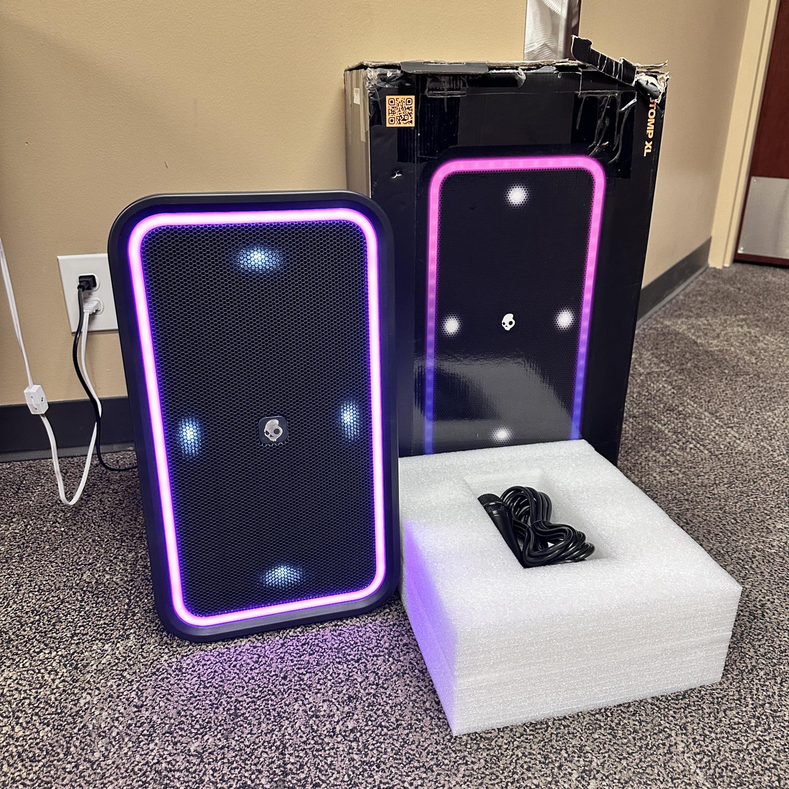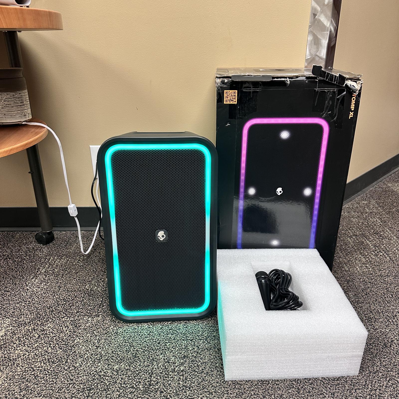 condition Elevate your parties and gatherings with the SkullCandy STOMP XL Party Speaker. Designed to deliver an immersive music experience, the STOMP XL offers powerful, room-filling sound with deep, punchy bass that's perfect for both indoor and outdoor events.