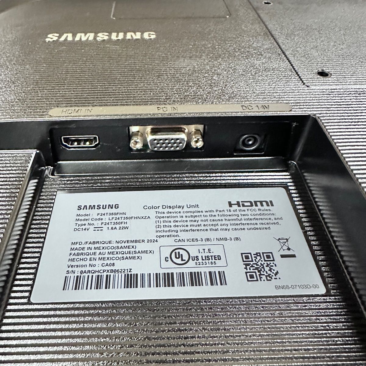 condition The Samsung F24T350FHN is a 24-inch Full HD monitor designed for everyday productivity, home office use, and entertainment. Featuring an IPS panel, this display delivers sharp visuals, accurate colors, and wide viewing angles for a comfortable viewing experience throughout the day.