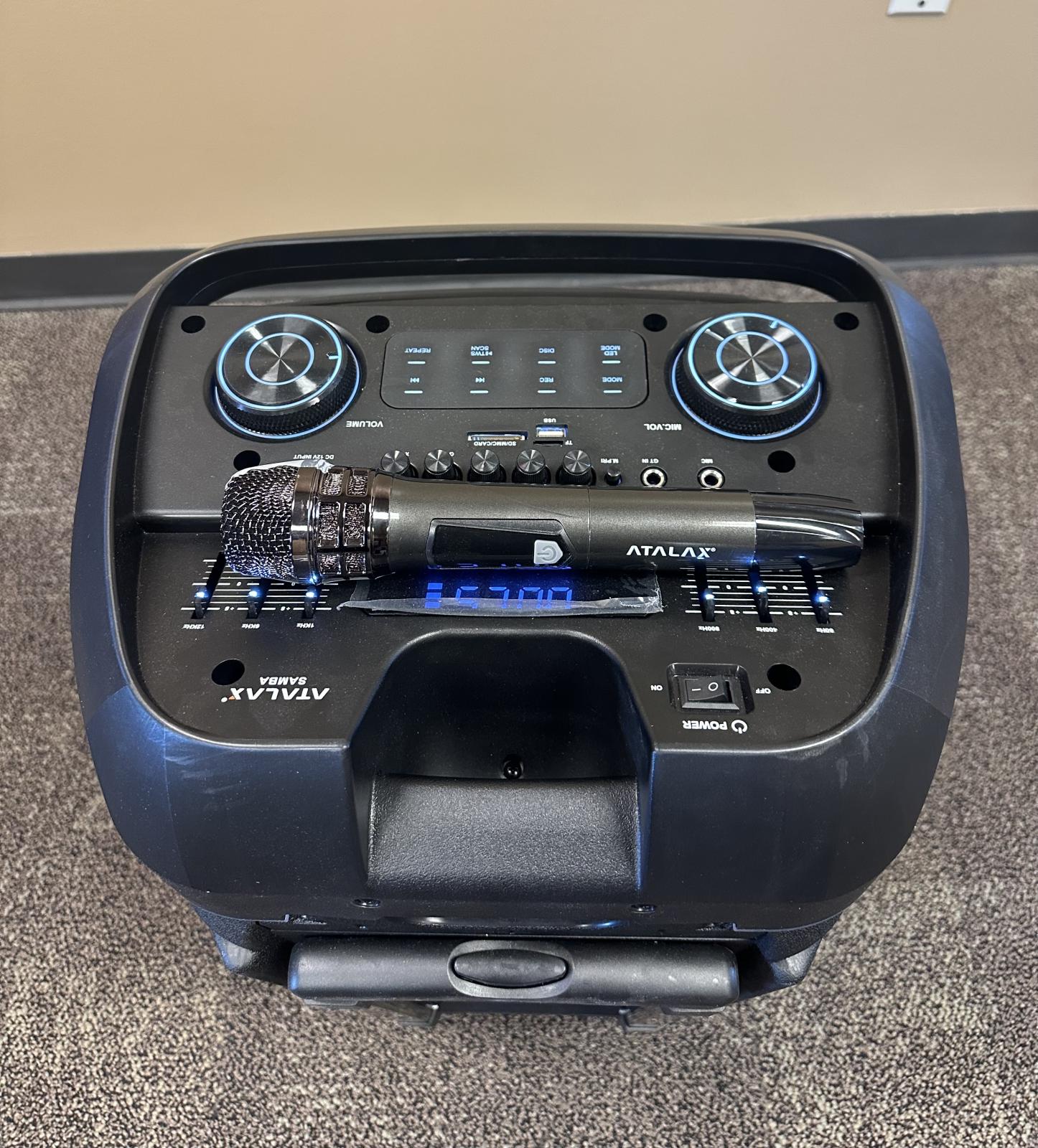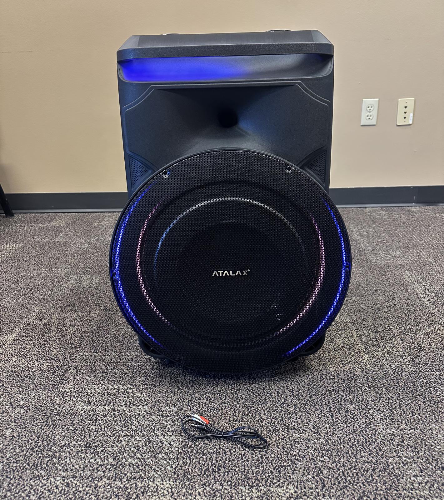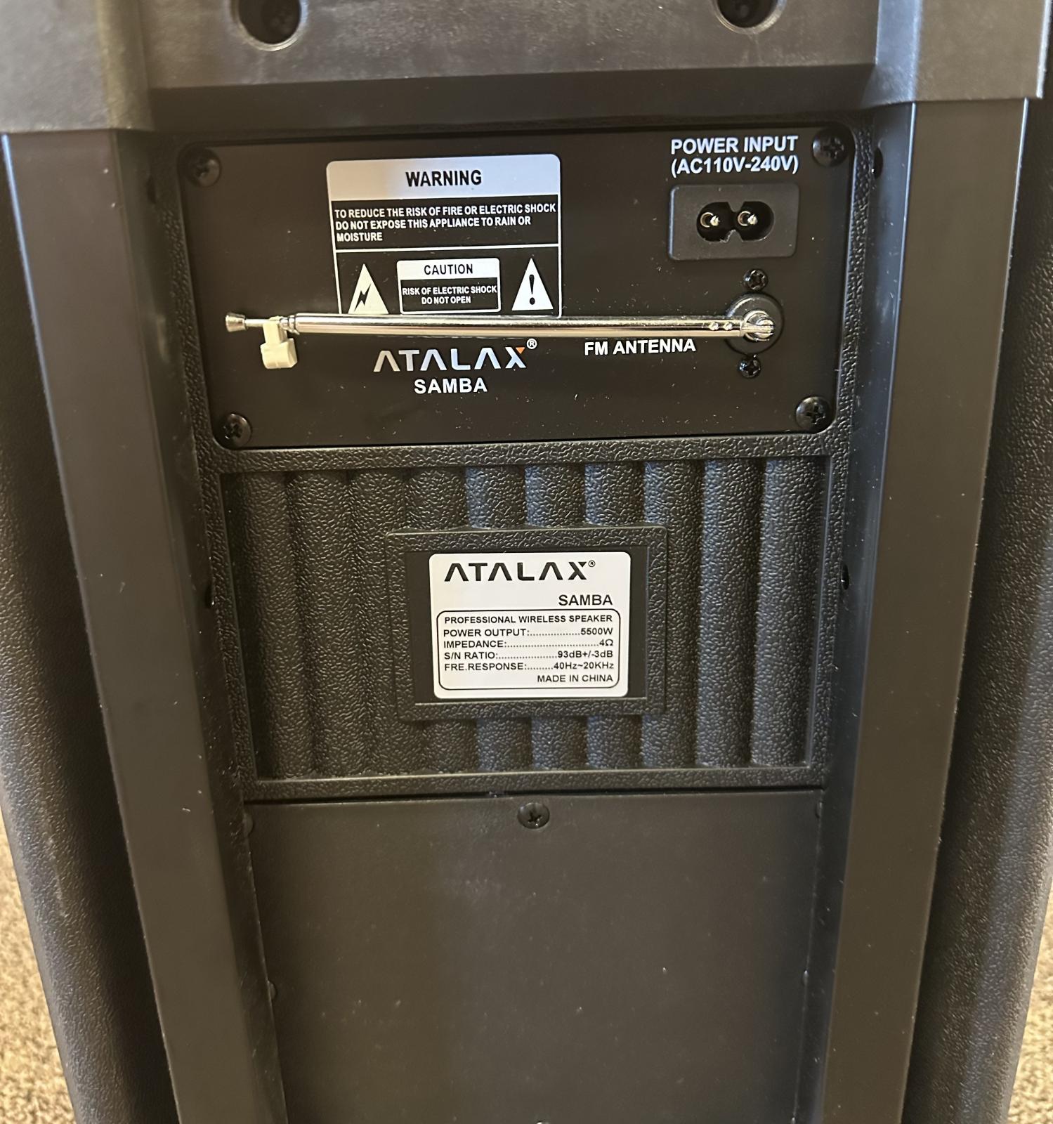 with minor signs of use. Bring the party to life with the powerful ATALAX Samba Professional Wireless Speaker .