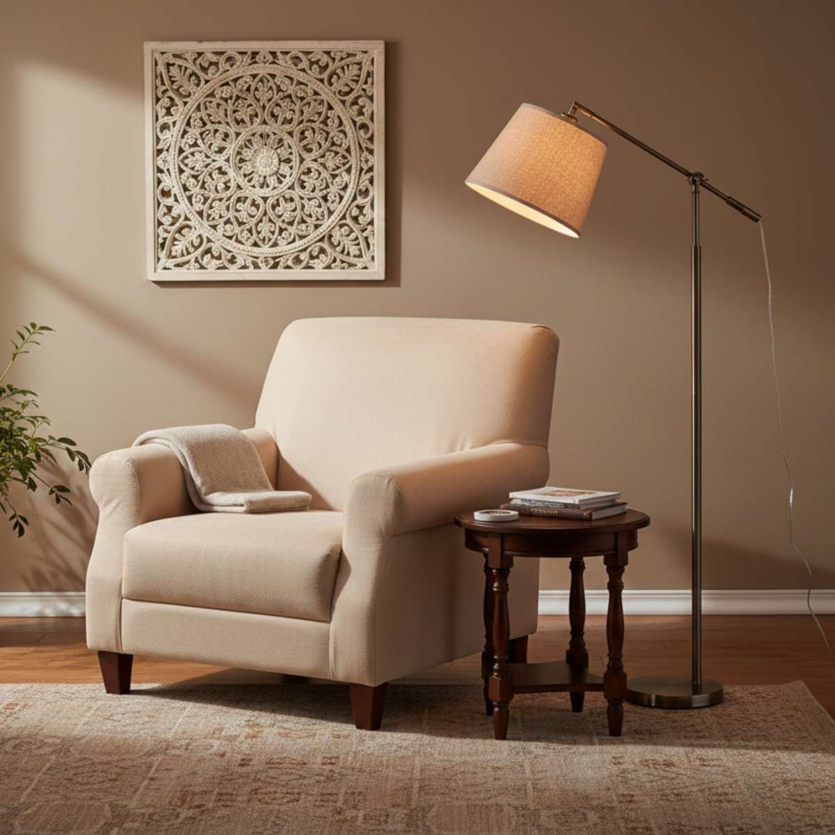 A sturdy metal base ensures stability, making it suitable for daily use by readers, remote workers, or anyone seeking focused floor lighting. Specifications - Brand: Kenroy Home - Model: 32573DAB - Type: Tilt Floor Lamp - Dimensions: 71" H x 32" W x 13" D - Finish: Dark Antique Brass - Material: Metal - Bulb Type: Standard bulb (not included) - Use: Indoor