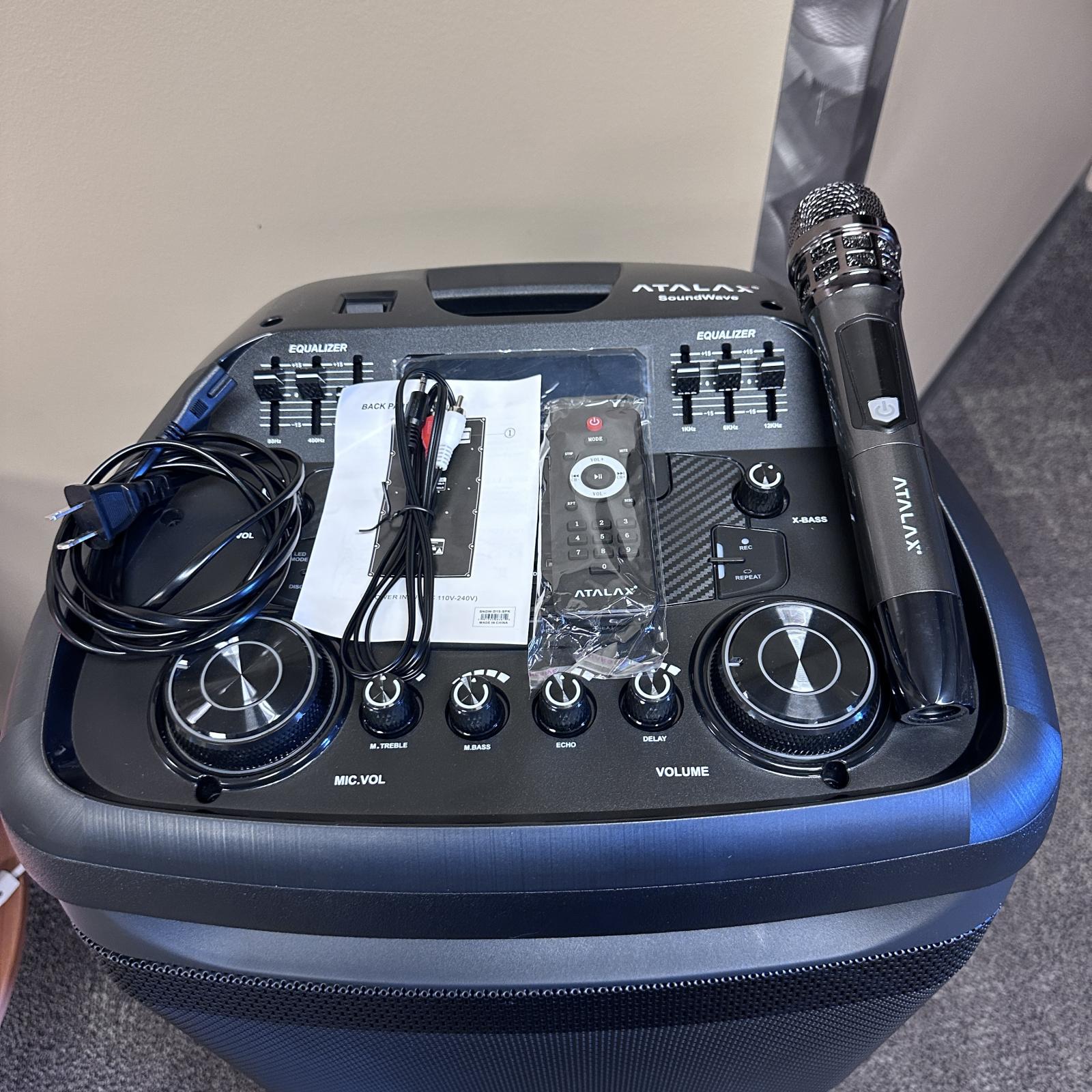 With a frequency response range of 40Hz – 20kHz , it covers both deep lows and crisp highs, making it perfect for parties, events, home entertainment, or DJ setups. The Atalax SoundWave features wireless connectivity , allowing you to stream music directly from your phone, tablet, or laptop with ease.
