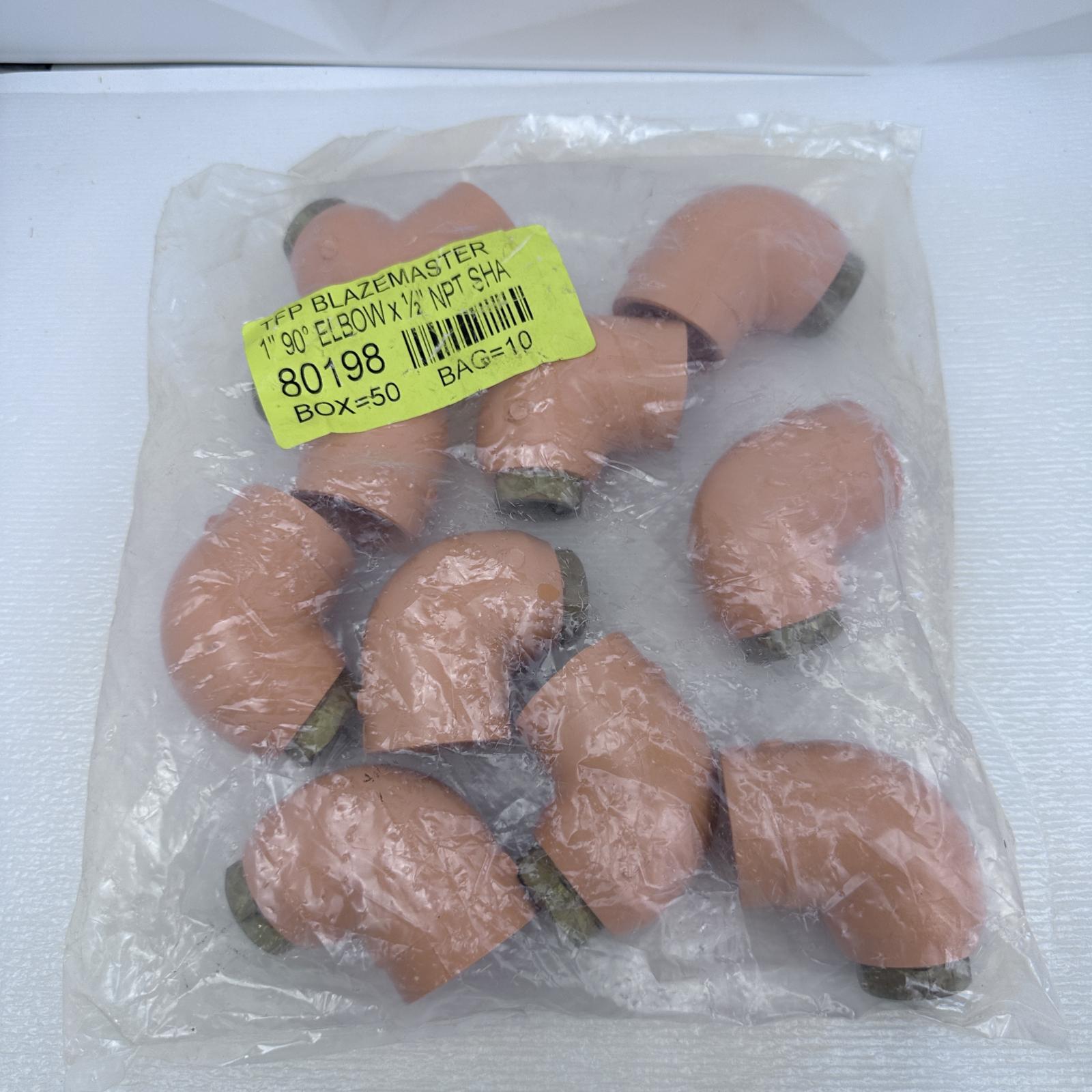 This pack includes 10 TFP Blazemaster 1" 90 degree CPVC sprinkler head elbows. They are new and ready for use in plumbing applications.