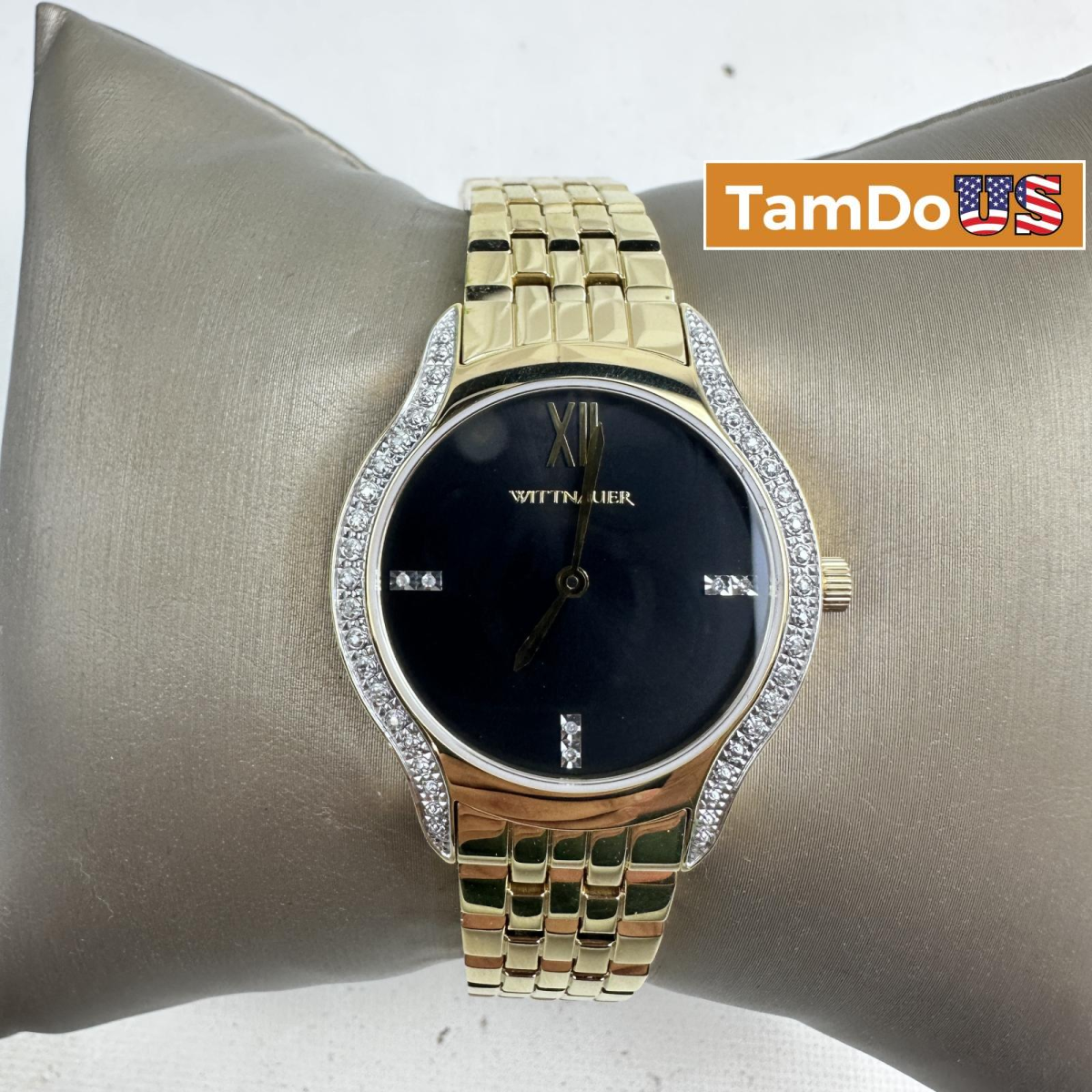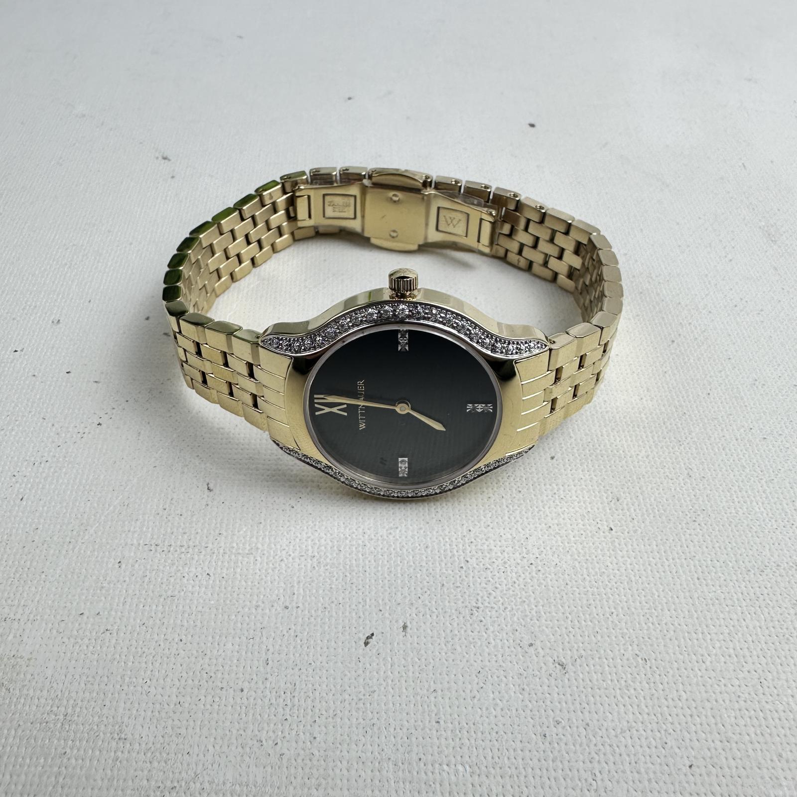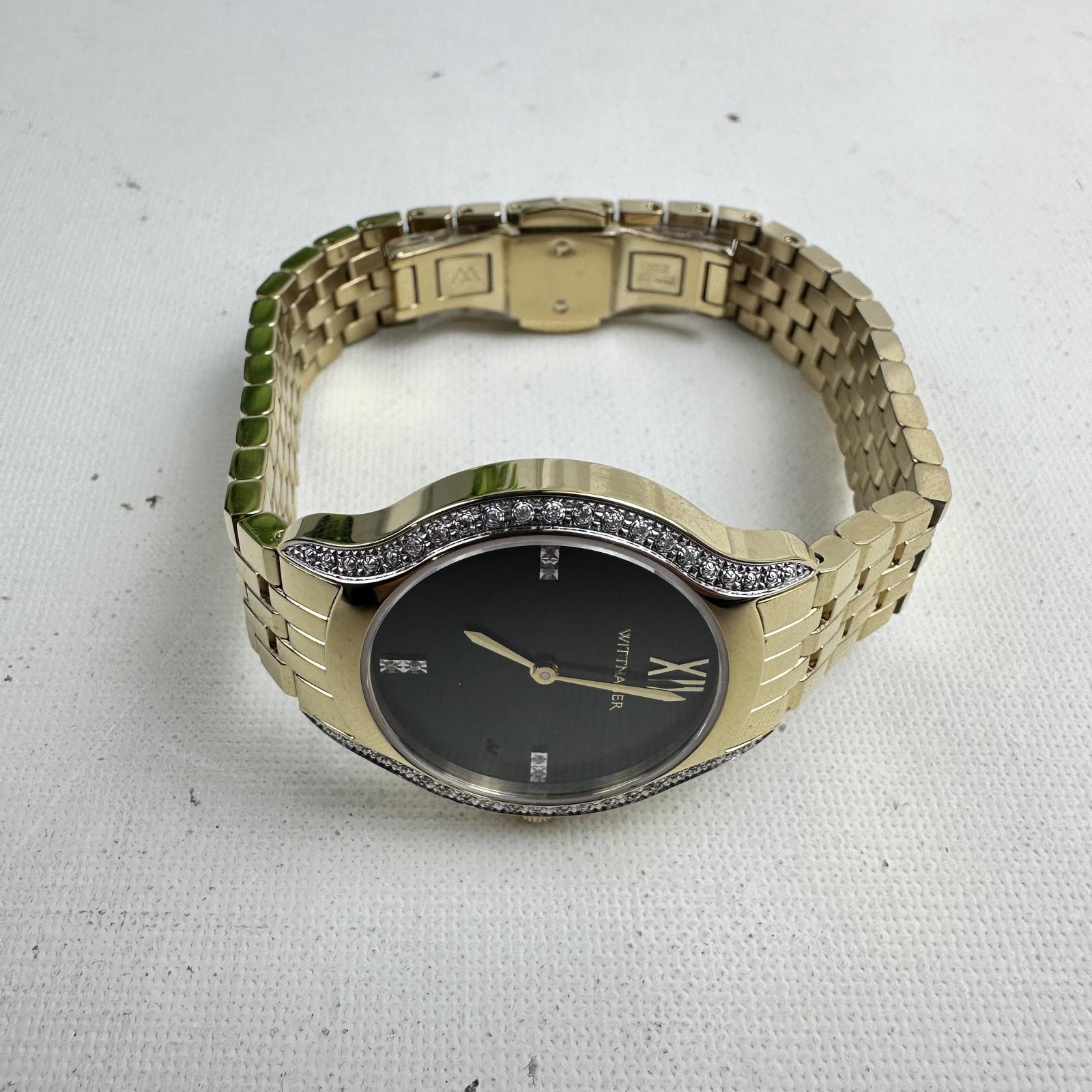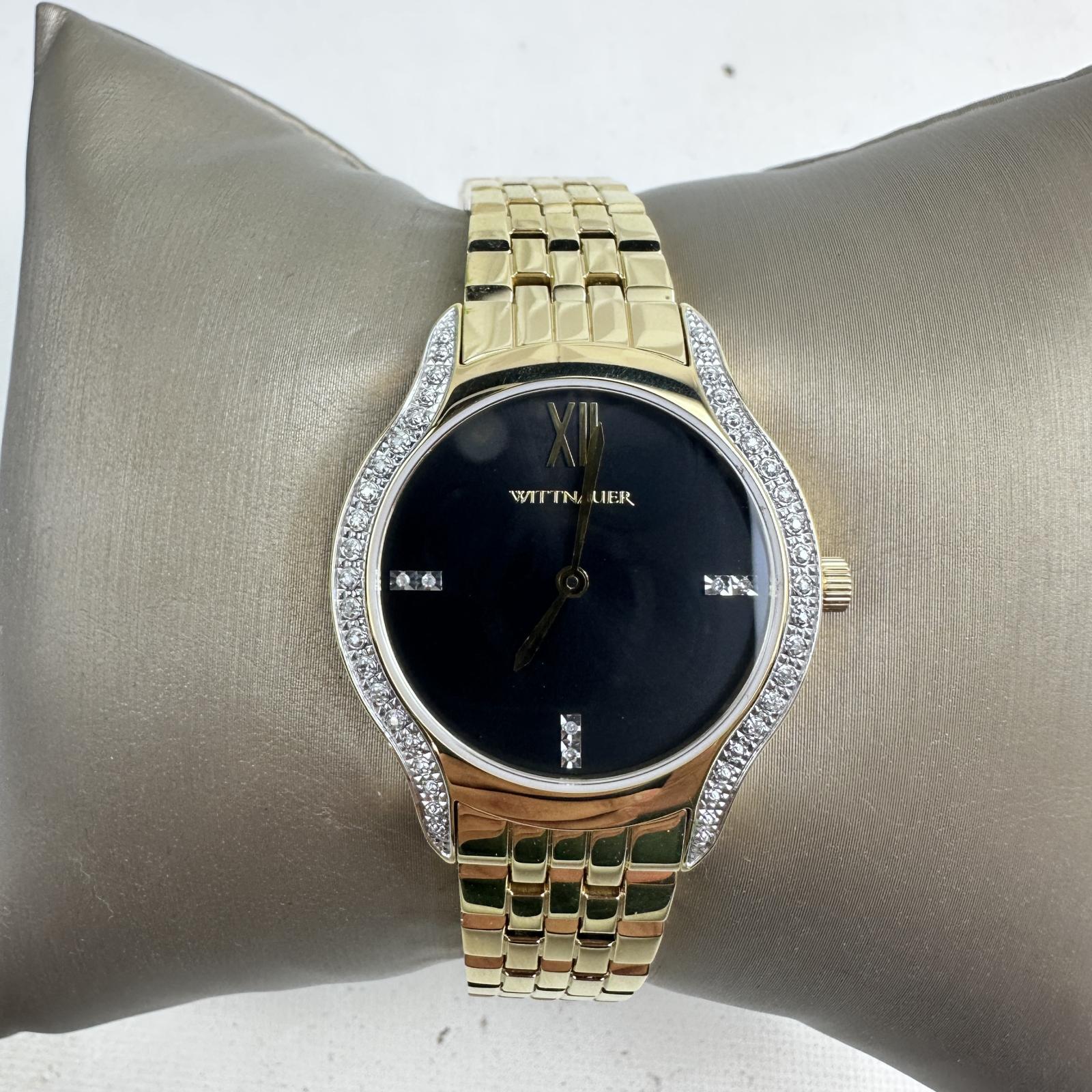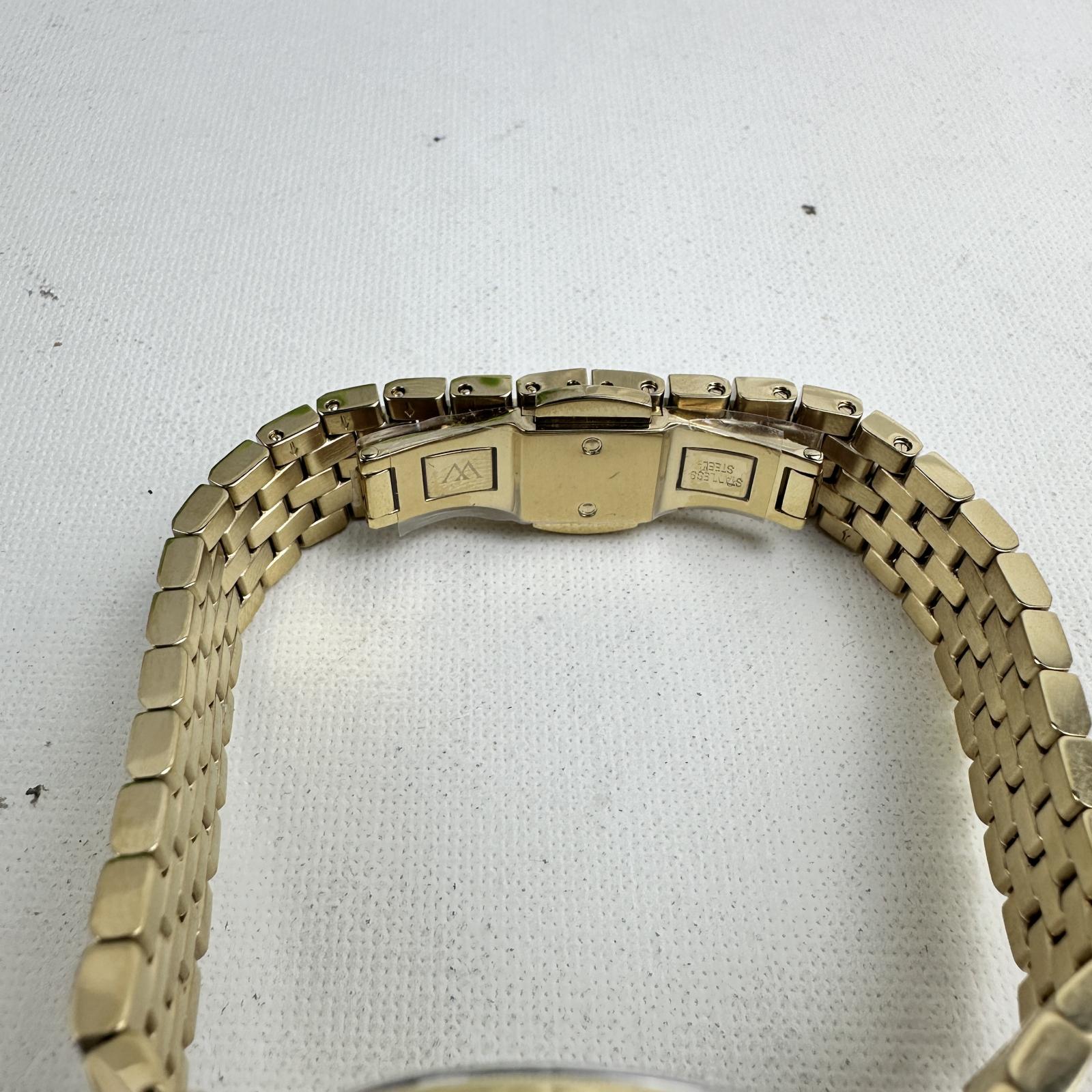 with minor signs of wear. Refined and radiant, the Wittnauer WN4117 women’s watch features a 32mm stainless steel case and bracelet, highlighted by elegant diamond accents on the dial.