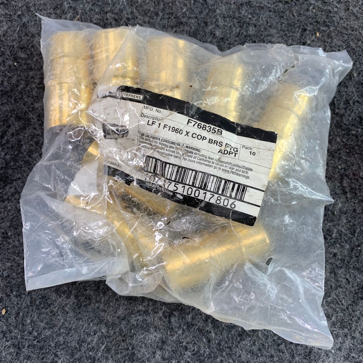 This 9-pack of Jones Stephens LF 1" F1960 x Copper Brass Fitting Adapters is in new open box condition. Ideal for plumbing projects.