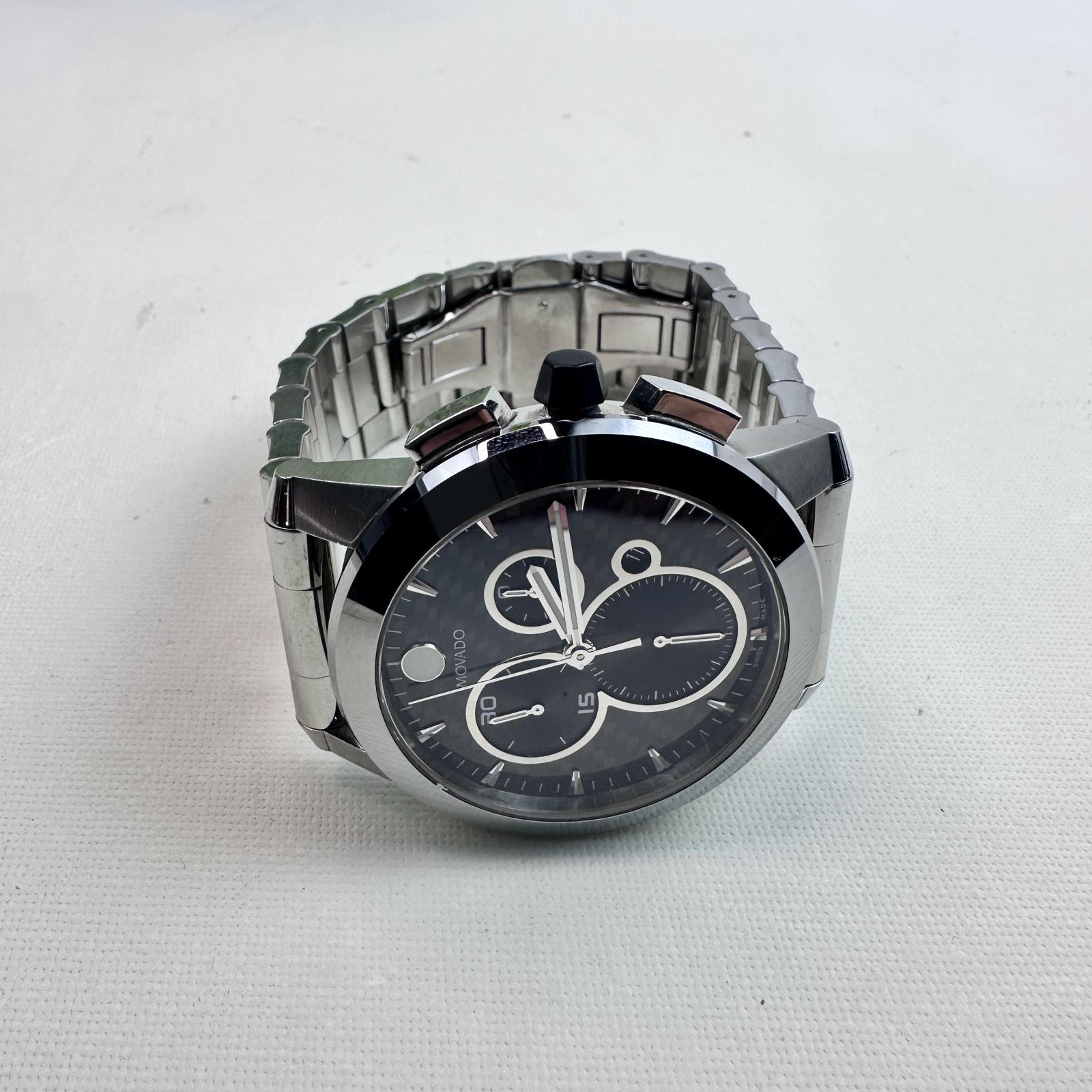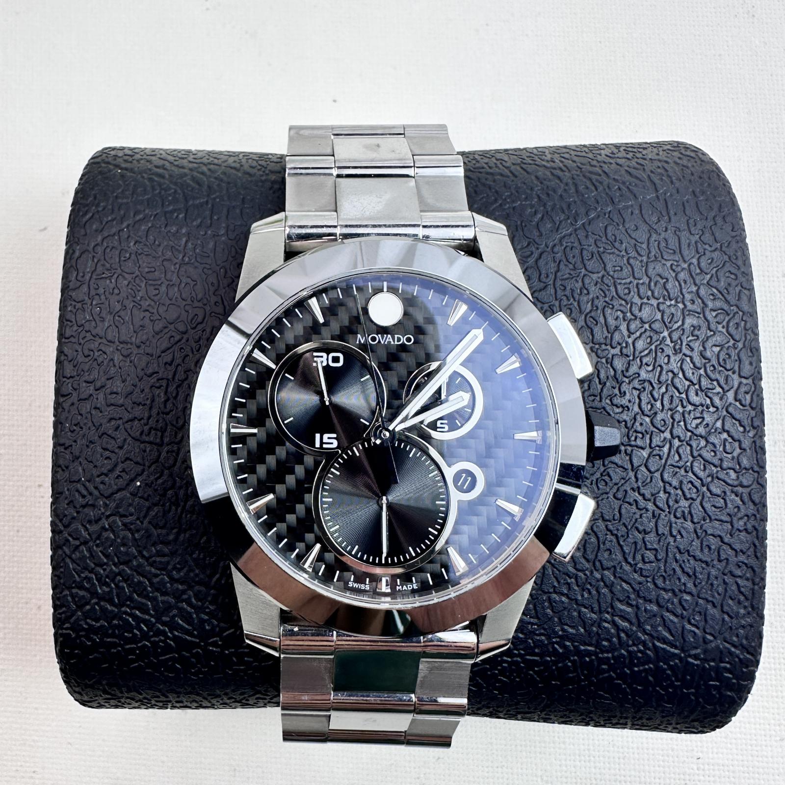 , may have signs of use/surface marks. The Movado Vizio Chronograph redefines bold elegance with its 45mm stainless steel case and black carbon fiber dial.