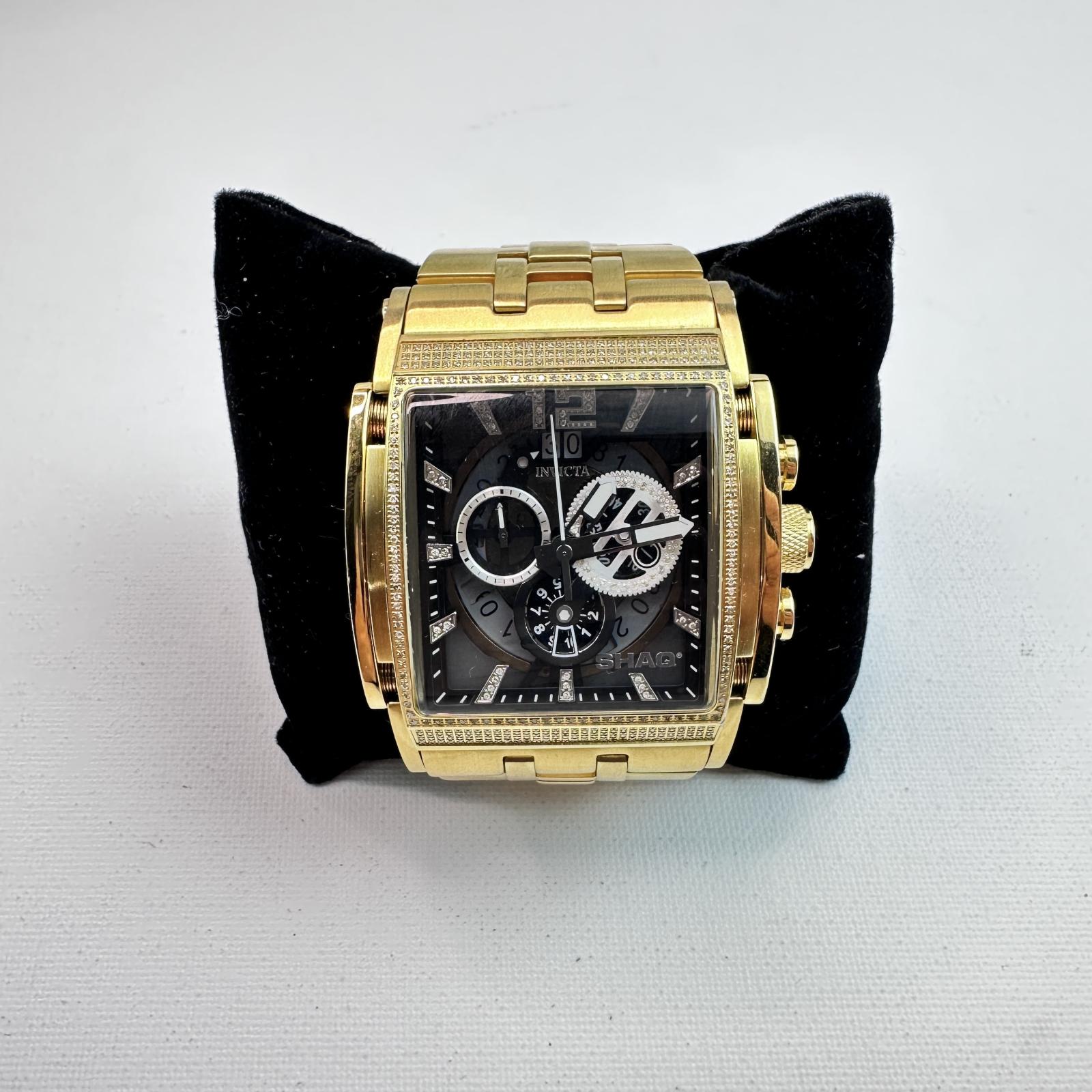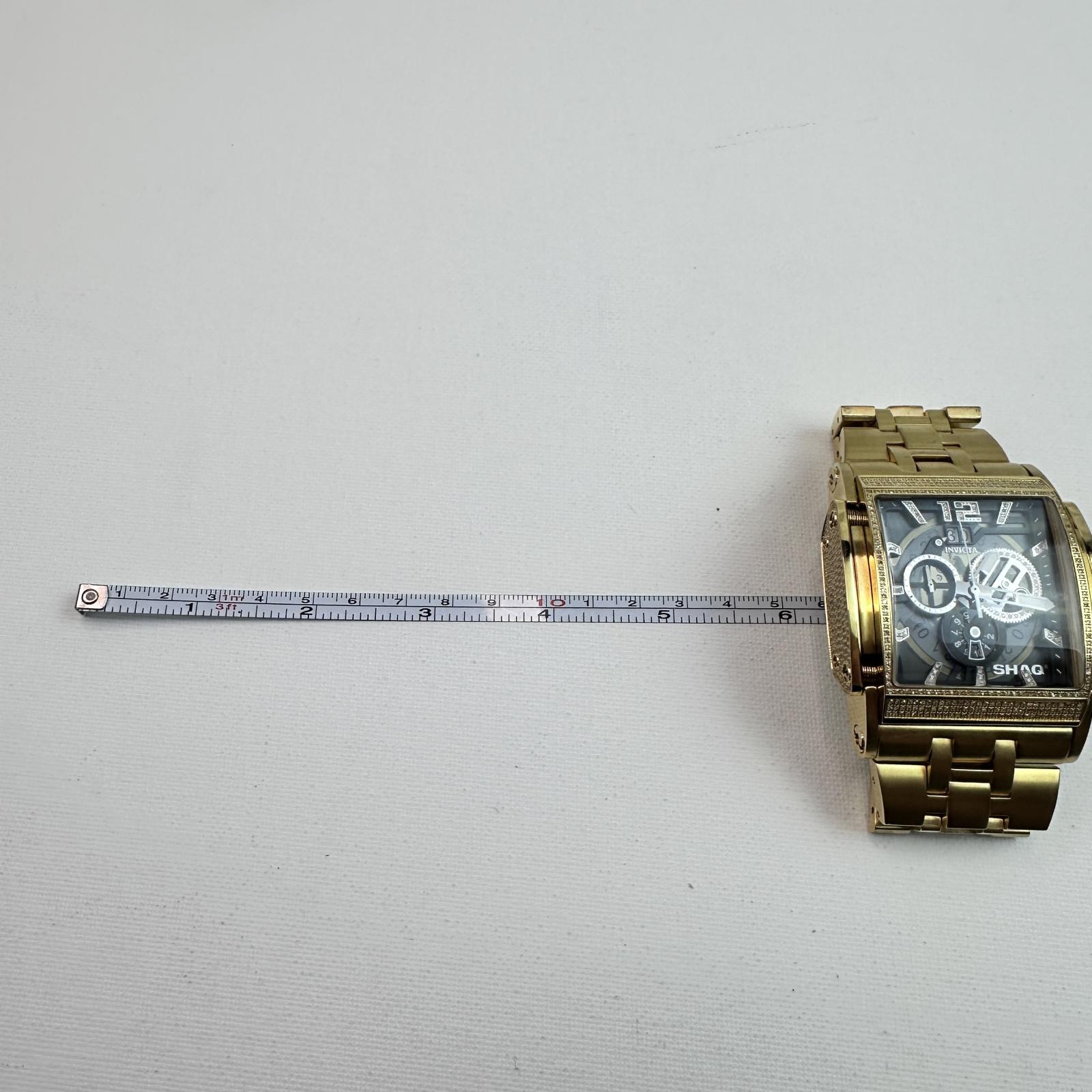 with minor signs of use. Make a bold statement with the Invicta SHAQ 33741 Men's Watch , a luxury timepiece designed in collaboration with NBA legend Shaquille O’Neal.