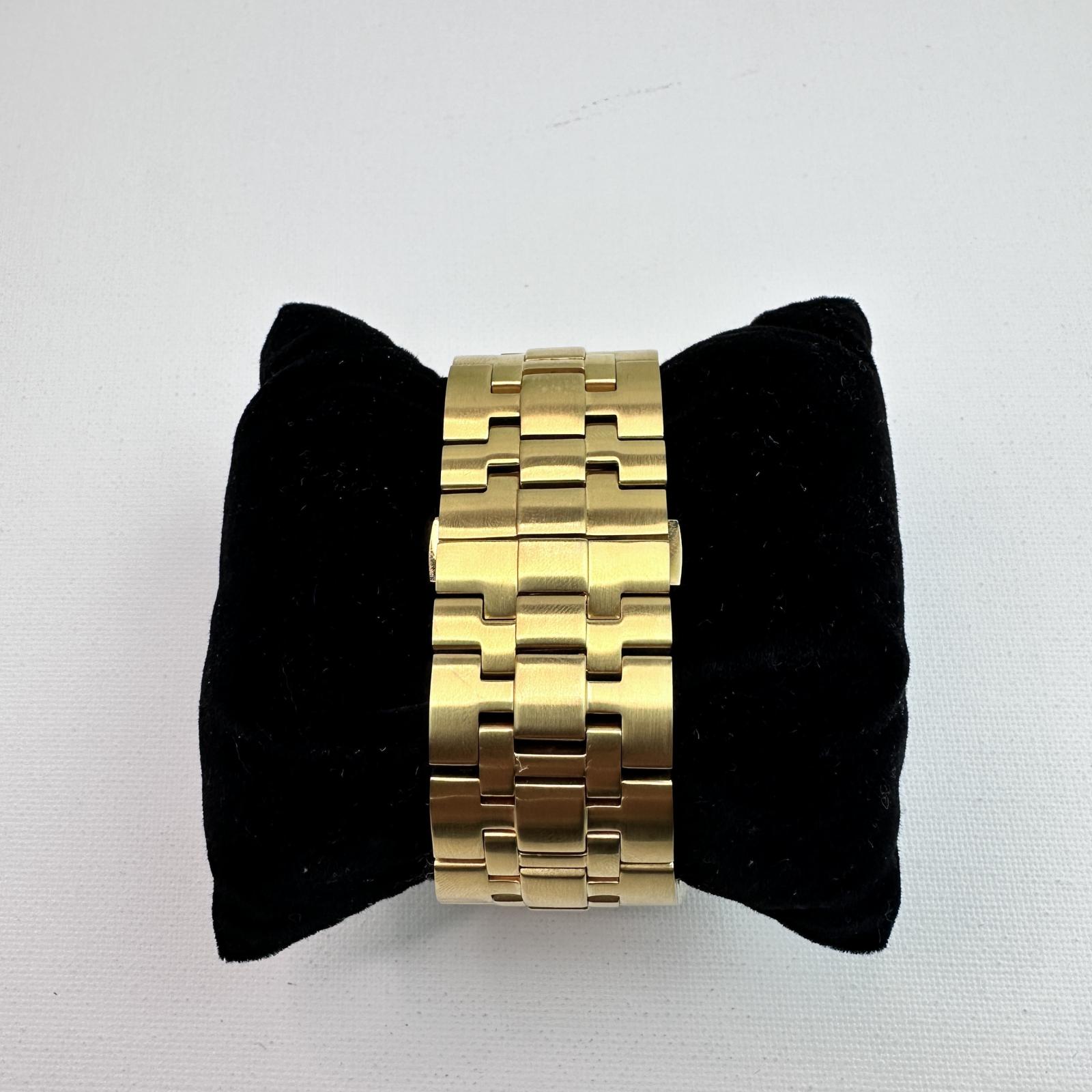 Featuring a 47mm gold-tone stainless steel case and bracelet , this watch is adorned with 3.28 carats of genuine diamonds , delivering unmatched brilliance and prestige. The metallic dial includes chronograph subdials , luminous hands , and a date window , all powered by a Swiss Ronda 5040.B quartz movement for precise timekeeping.