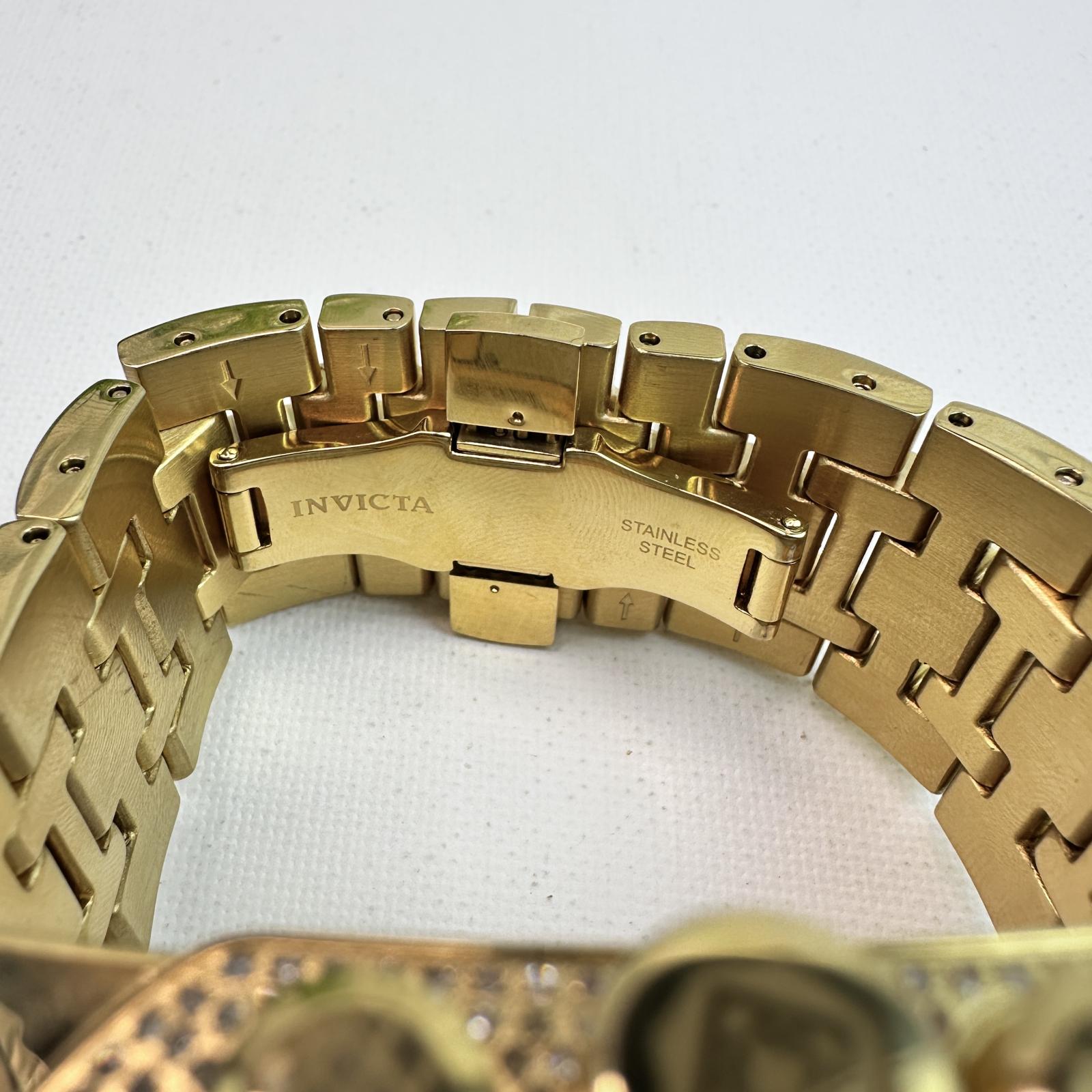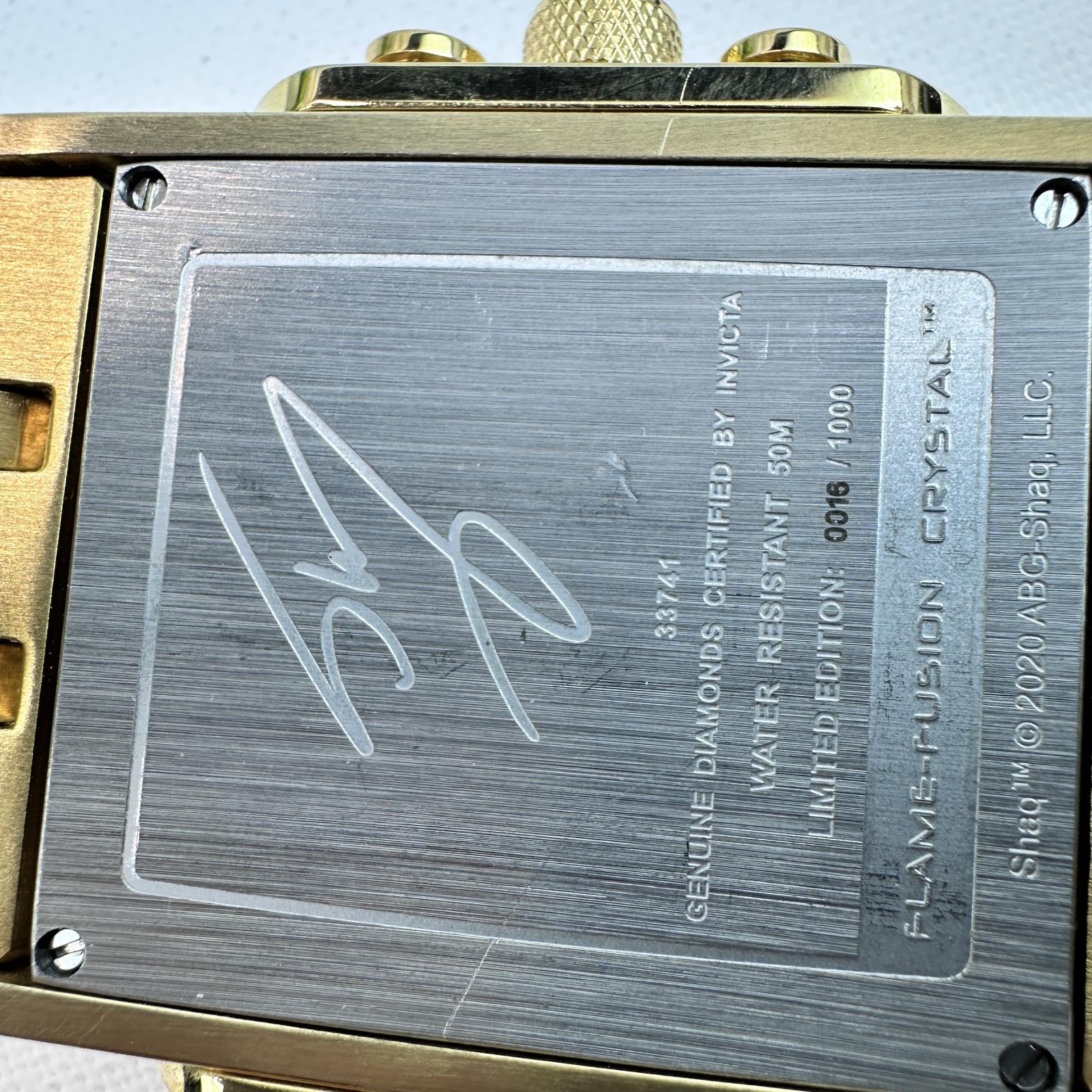 The Flame Fusion crystal ensures scratch resistance, while the 200M water resistance makes it suitable for swimming and water sports. Key Features: - Model : 33741 - Retail Price : $4,299 - Movement : Swiss Quartz Ronda 5040.B - Case Size : 47mm - Dial : Metallic with chronograph and date - Band : Gold-tone stainless steel - Diamond Weight : 3.28 carats - Crystal : Flame Fusion - Water Resistance : 200 meters - Extras : Gift box, instructions, 3-year warranty Part of the Invicta SHAQ Signature Collection , this watch blends athletic legacy with luxury craftsmanship, ideal for collectors and bold style enthusiasts.