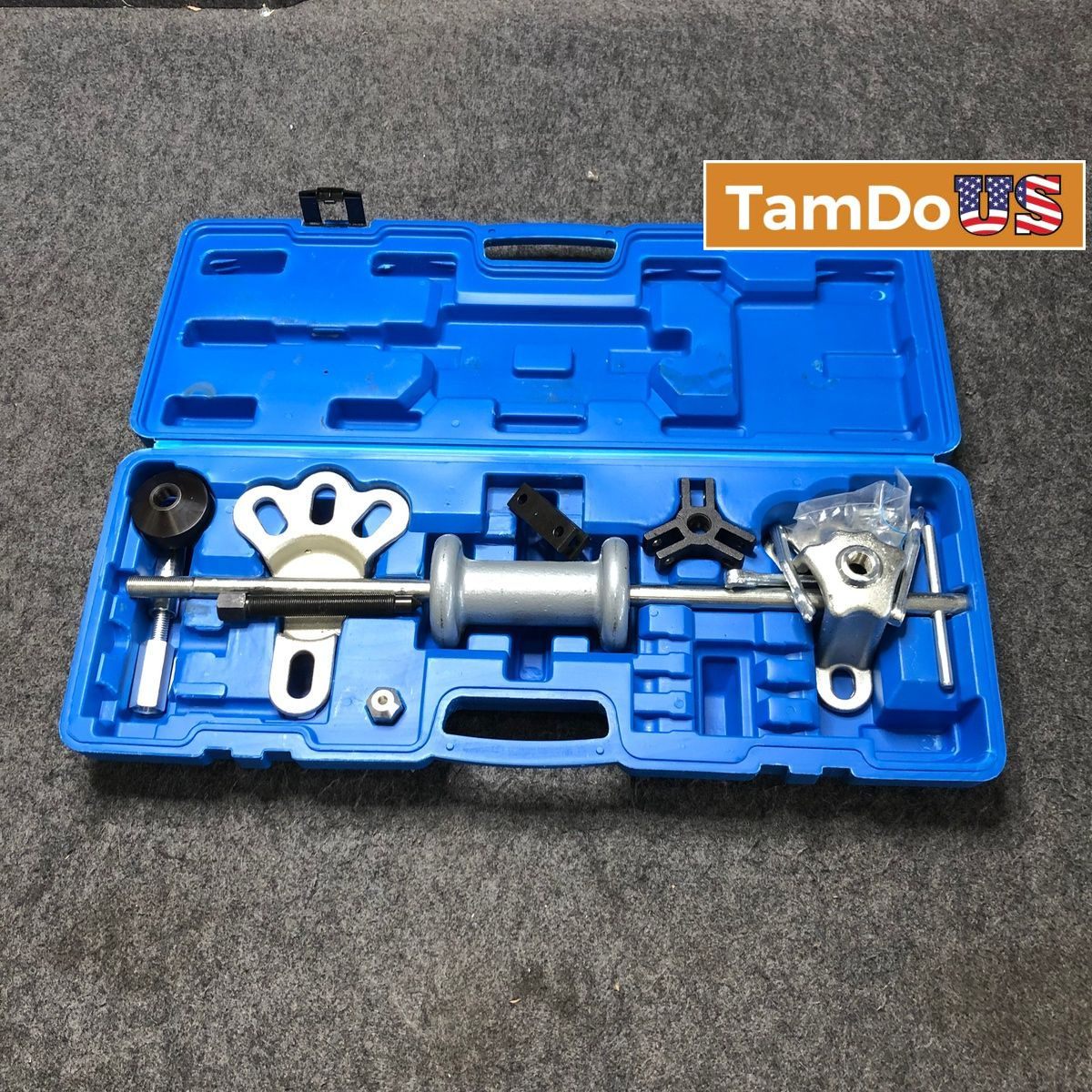 This Acymner 19PCS Slide Hammer Puller Set is new and made of heavy-duty carbon steel. It's perfect for replacing damaged parts or removing dents in vehicles.