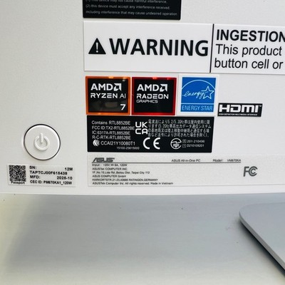 Specifications: - Model: ASUS ExpertCenter PM670KA / VM670KA - Display: 27" FHD (1920 x 1080) 16:9 Touch-Screen - Processor: AMD Ryzen AI 7 350 (8C/16T) w/ Radeon 860M - Memory: 32GB DDR5 5600 MT/s (Dual Channel) - Storage: 1TB FORESEE NVMe SSD (Health: 100%) - Graphics: AMD Radeon 860M - OS: Microsoft Windows 11 Home (25H2 Ready) - Color: White / Silver