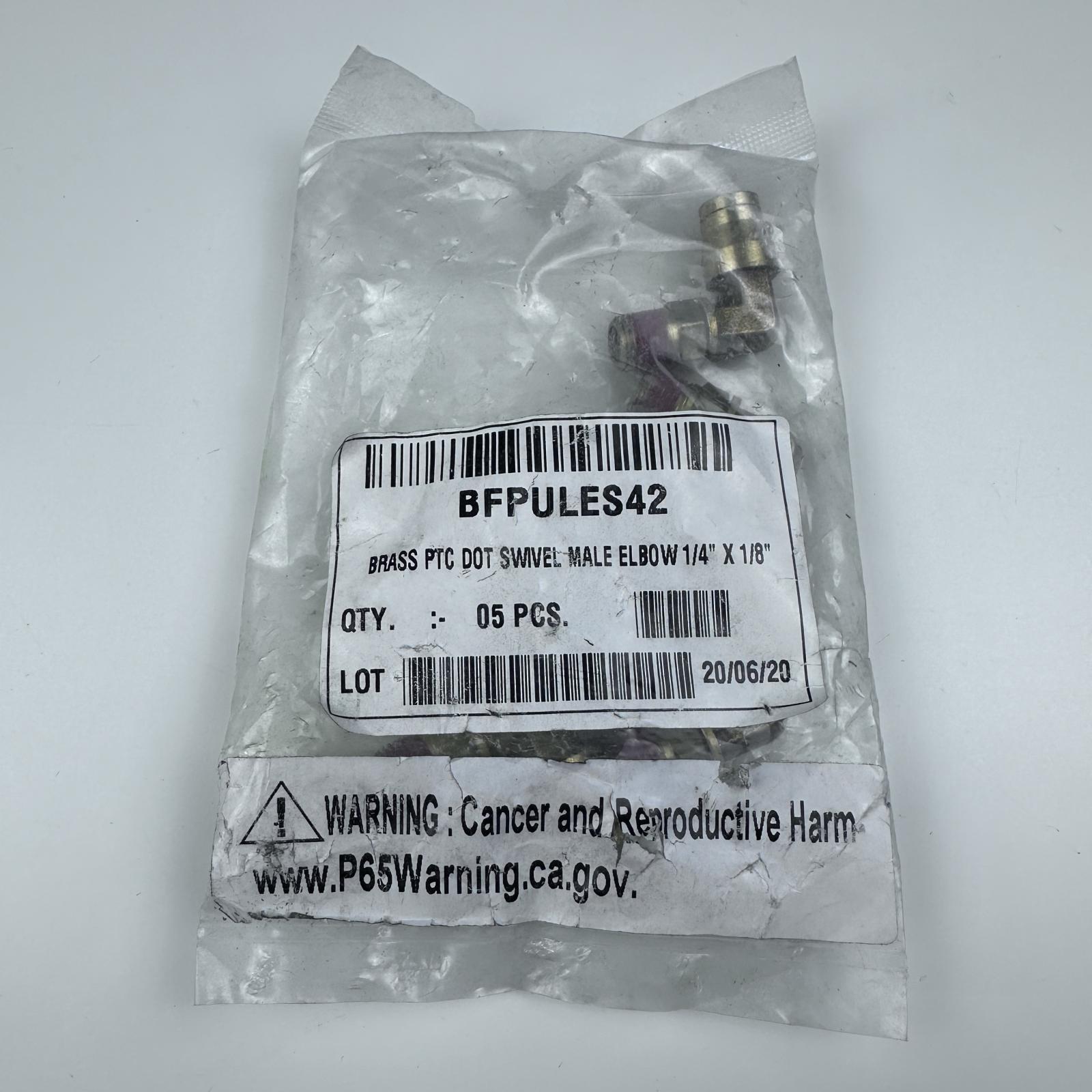BFPULES42 Brass Push-to-Connect DOT Swivel Male Elbow Fitting, 1/4" x 1/8"