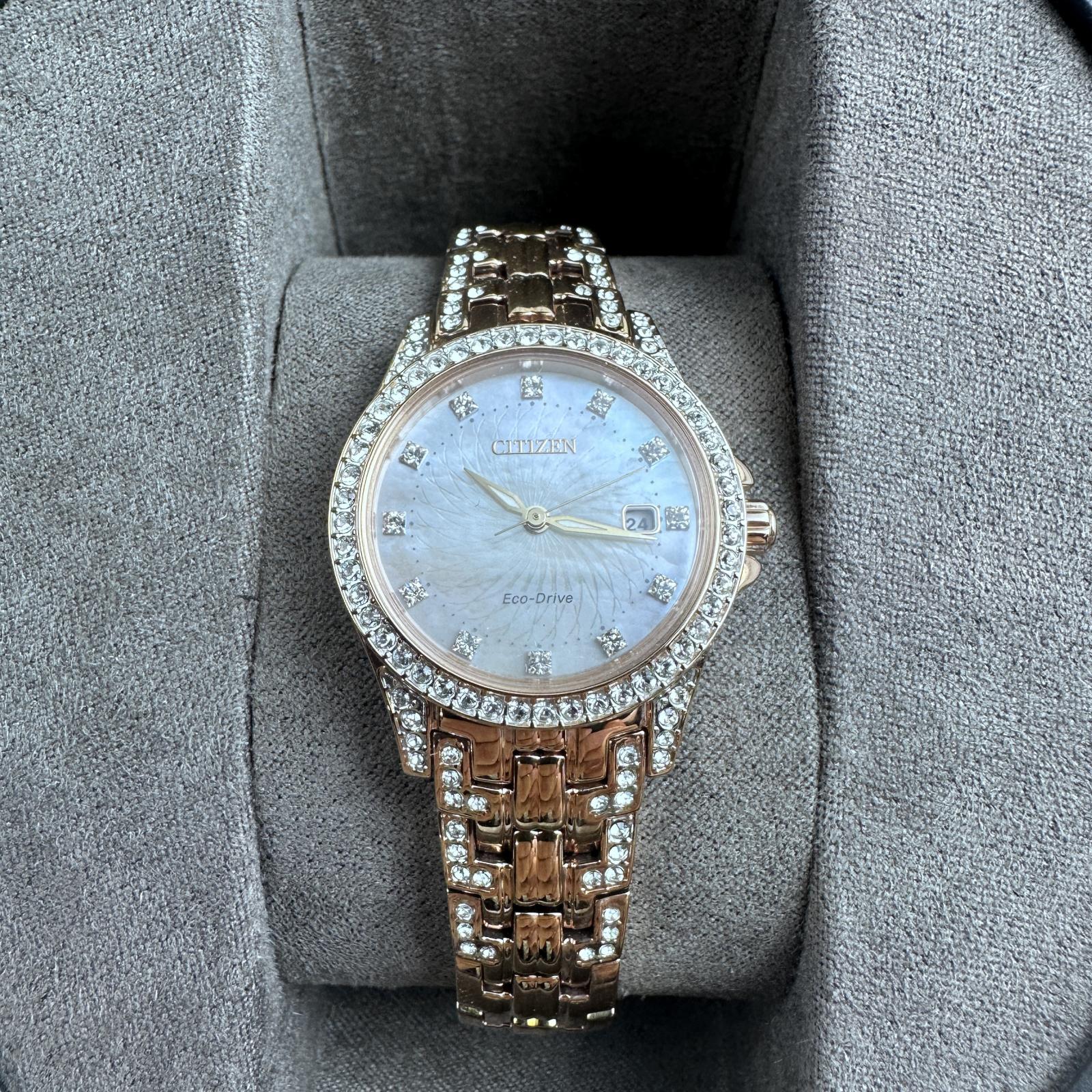 Citizen EW122853D Silhouette Eco-Drive Crystal Watch 28mm, Rose Gold Tone