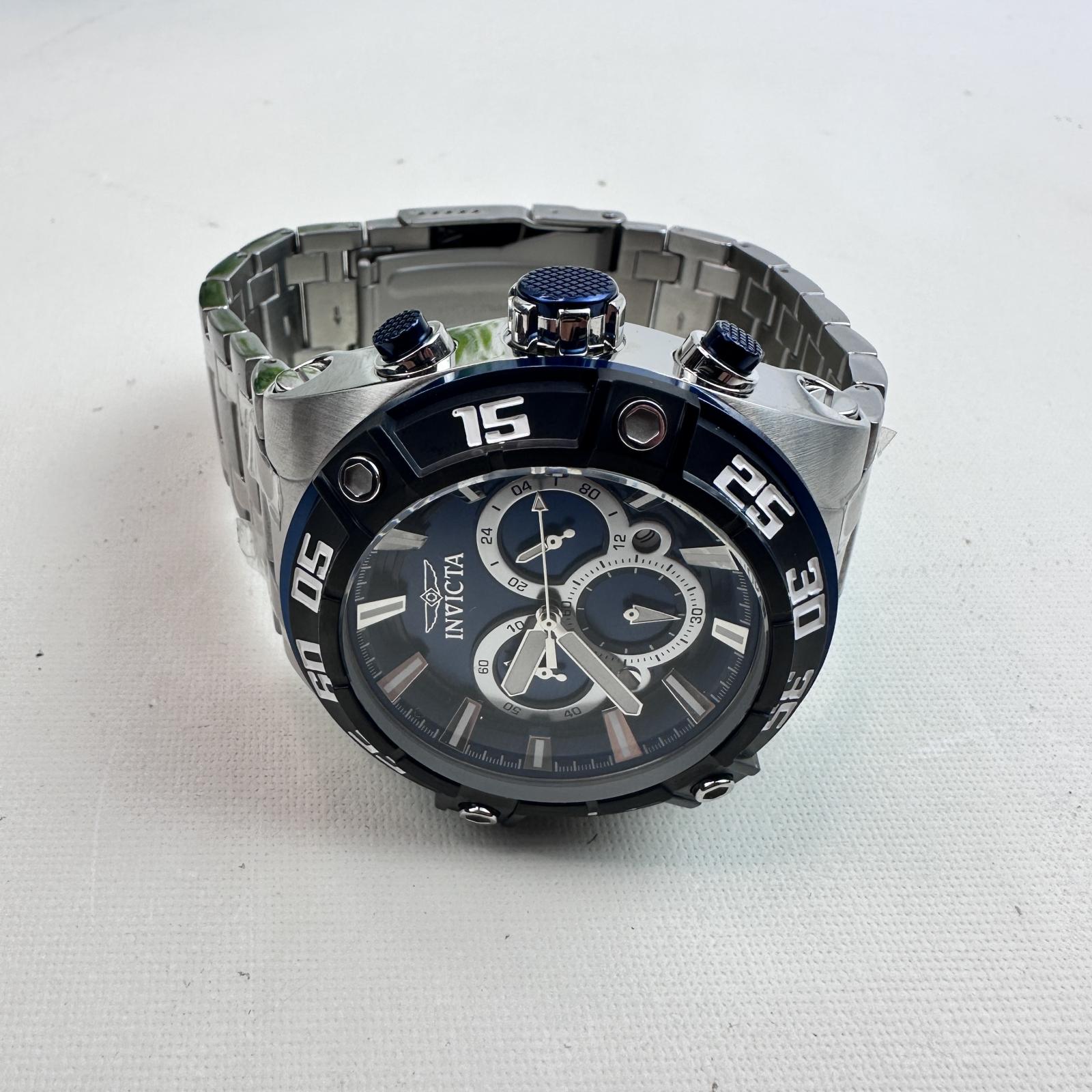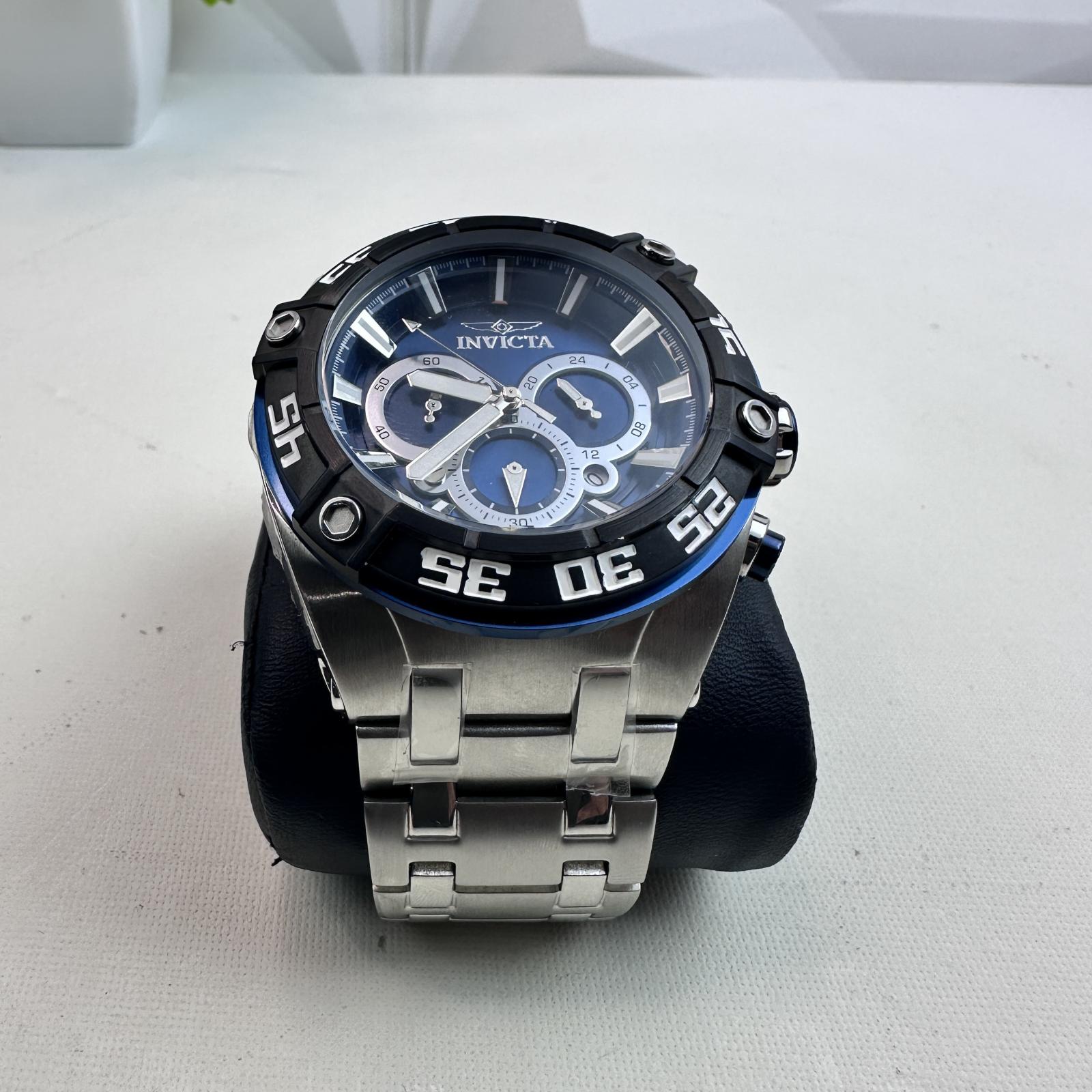 Whether you’re in the office or outdoors, this watch combines power, design, and reliability — a true representation of Invicta craftsmanship. Specifications: - Case Diameter: 50 mm - Case/Bracelet: Stainless steel - Dial: Blue with chronograph subdials - Crystal: Flame-Fusion - Movement: Quartz - Water Resistance: 100 m