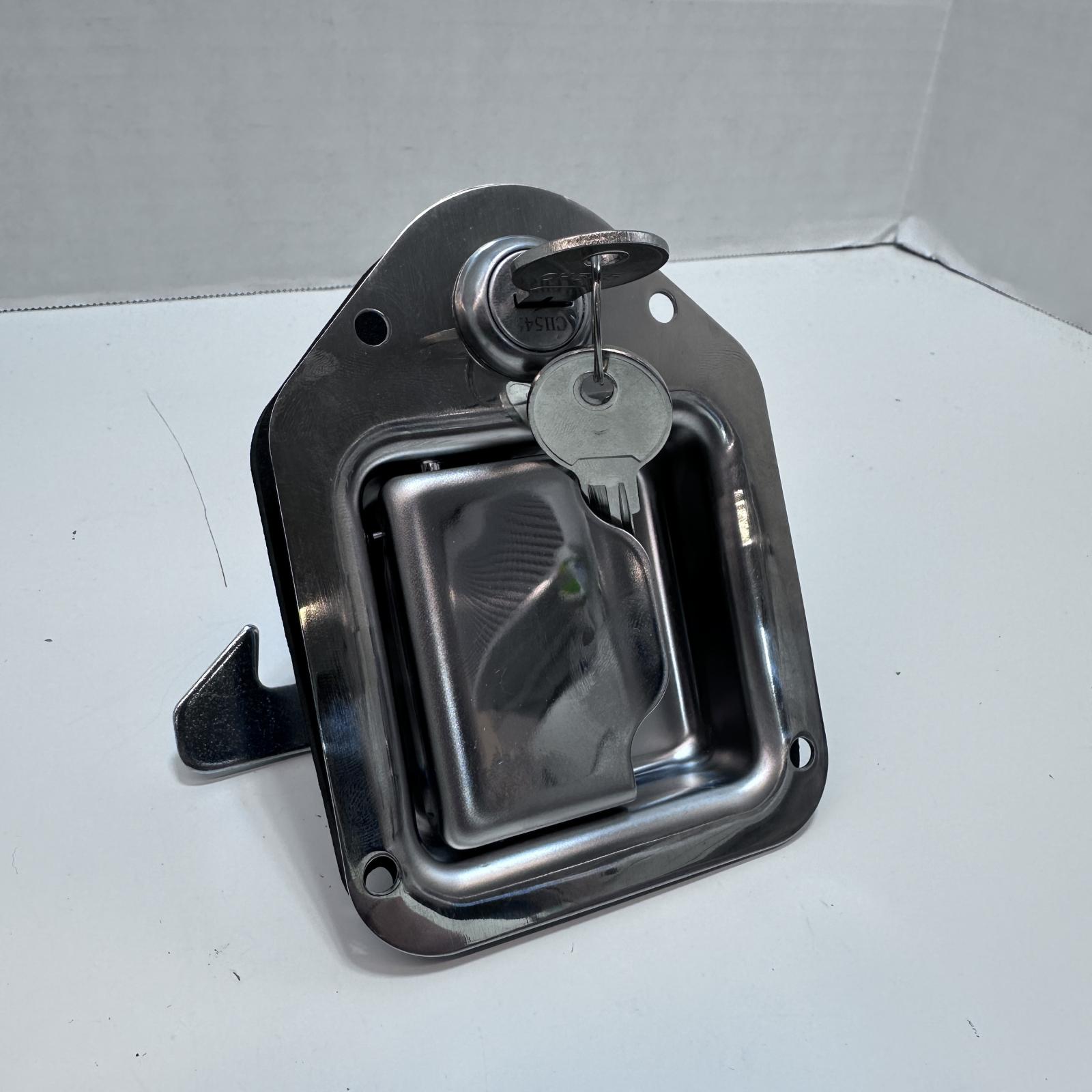 This Chrome Locking Mini Paddle Handle features a 90° rotation and includes the CH506 key. It's in new open box condition and ready for use.