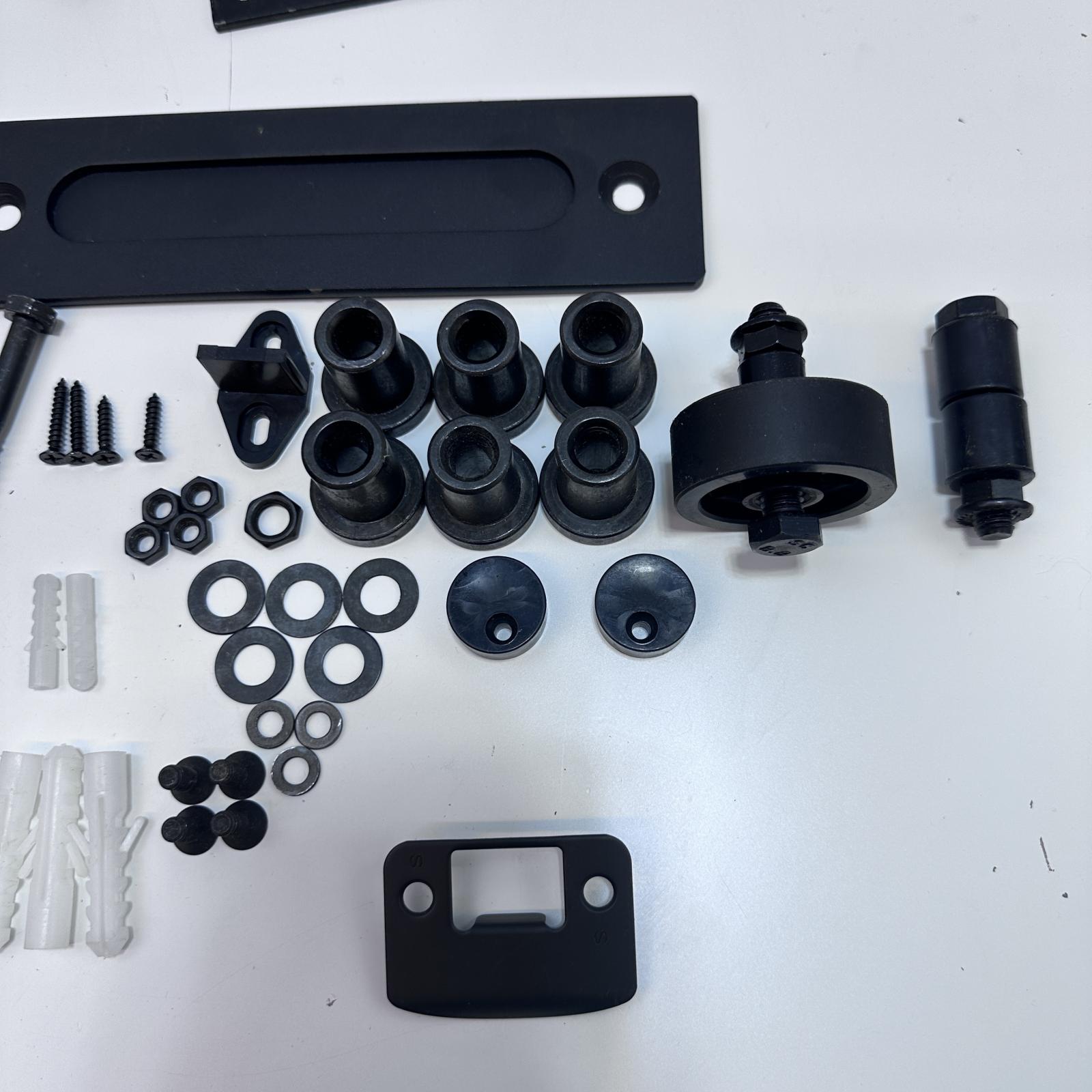 This Matte Black Sliding Barn Door Handle is in new open box condition. It includes all accessories as shown in the reference pictures.