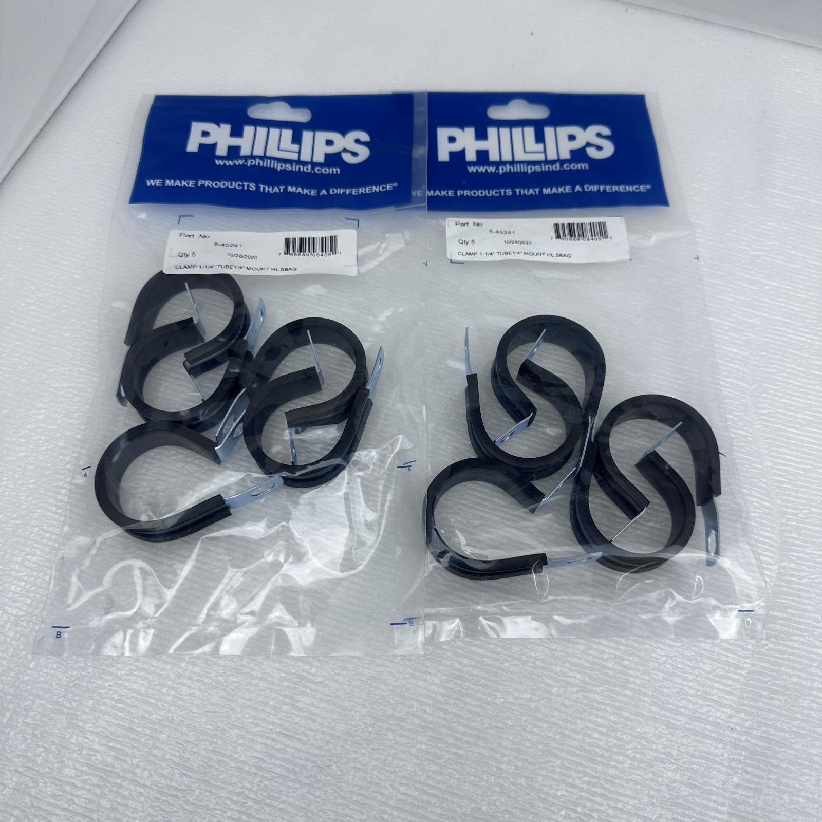 This set includes 2 bags of Phillips 1-1/4" tube clamps designed for heavy-duty applications. They are in new condition and ready for use.