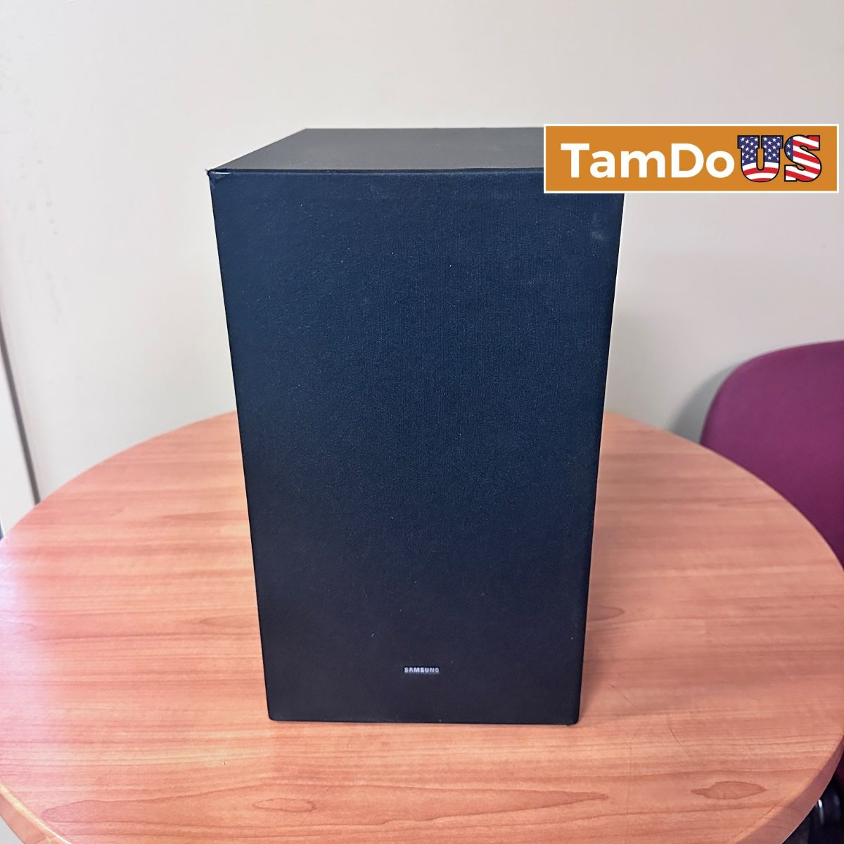 The Samsung PS-WA65B Wireless Subwoofer is in good condition with minor signs of use. It pairs wirelessly with select Samsung soundbars for deep bass performance.