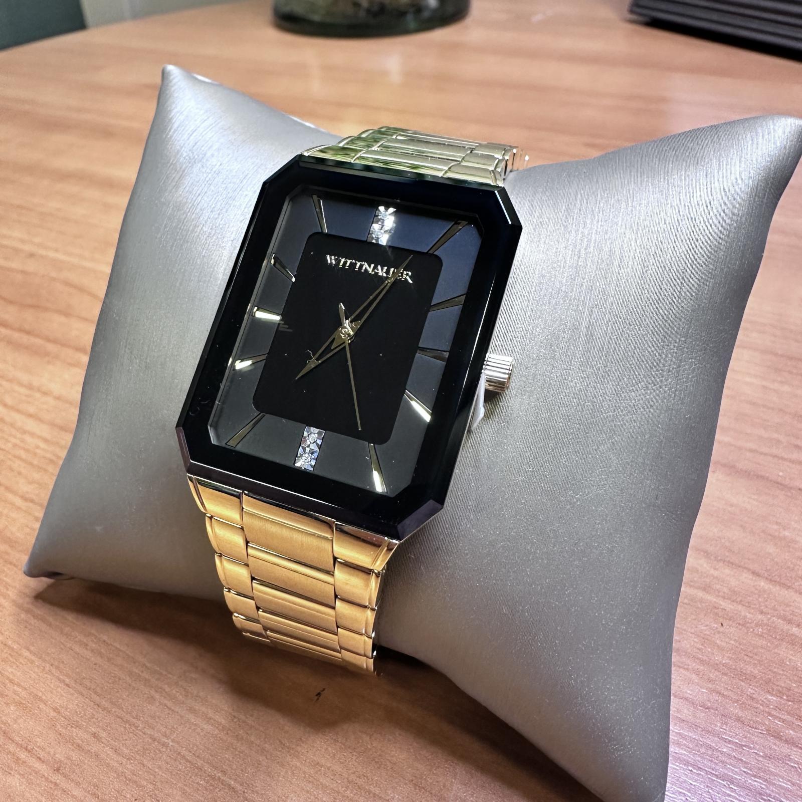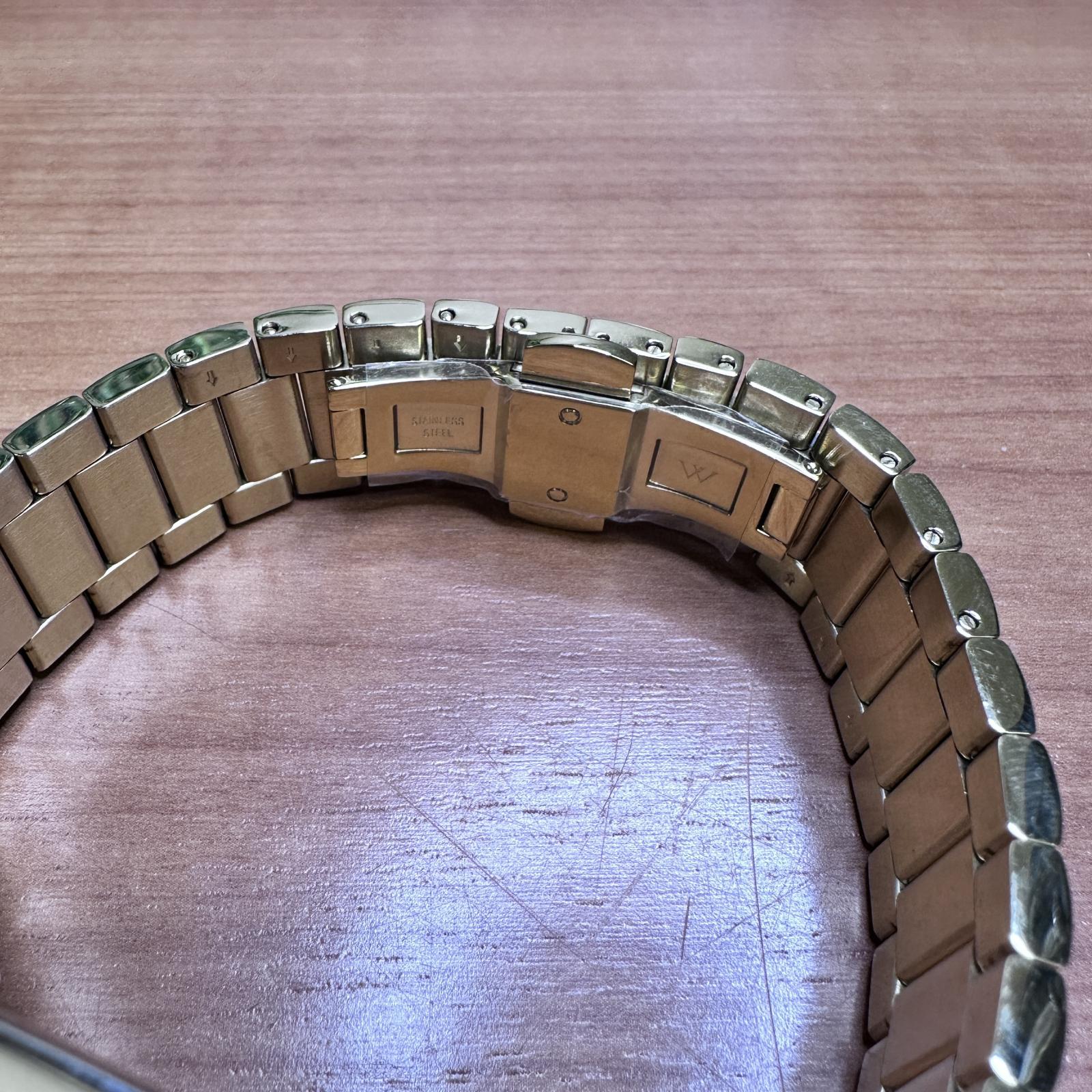 - Model : WN3092 - Retail Price : $495 - Movement : Japan Quartz - Crystal : Sapphire - Water Resistance : 50 meters - Band : China-made gold-tone metal - Case Material : Stainless Steel