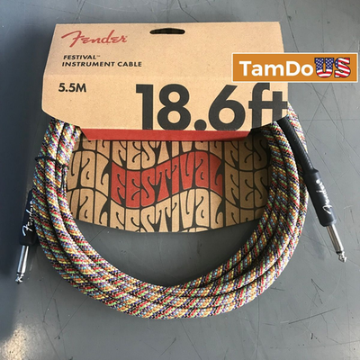 The Fender Festival Instrument Cable is a stylish and reliable audio cable designed for guitars, basses, keyboards, and other instruments with standard 1/4-inch connections. Measuring 18.6 feet or 5.5 meters, it provides plenty of length for practice, studio use, rehearsals, and live performance setups.