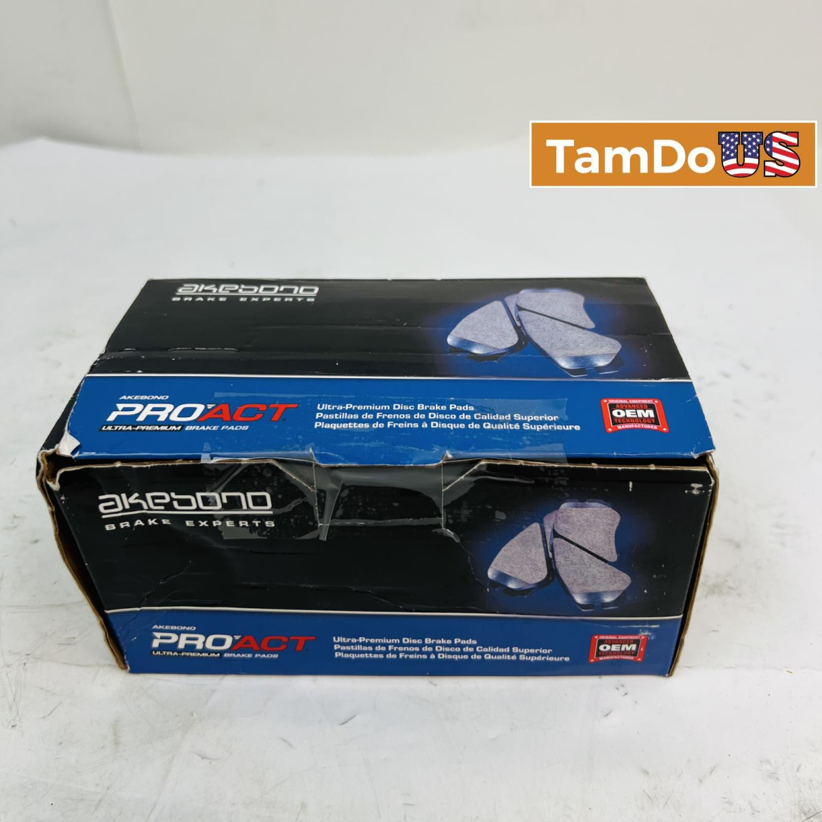 This set of Akebono ProACT ACT782 ceramic brake pads is new and designed for smooth, quiet braking. Made in the USA, they meet OEM specifications.
