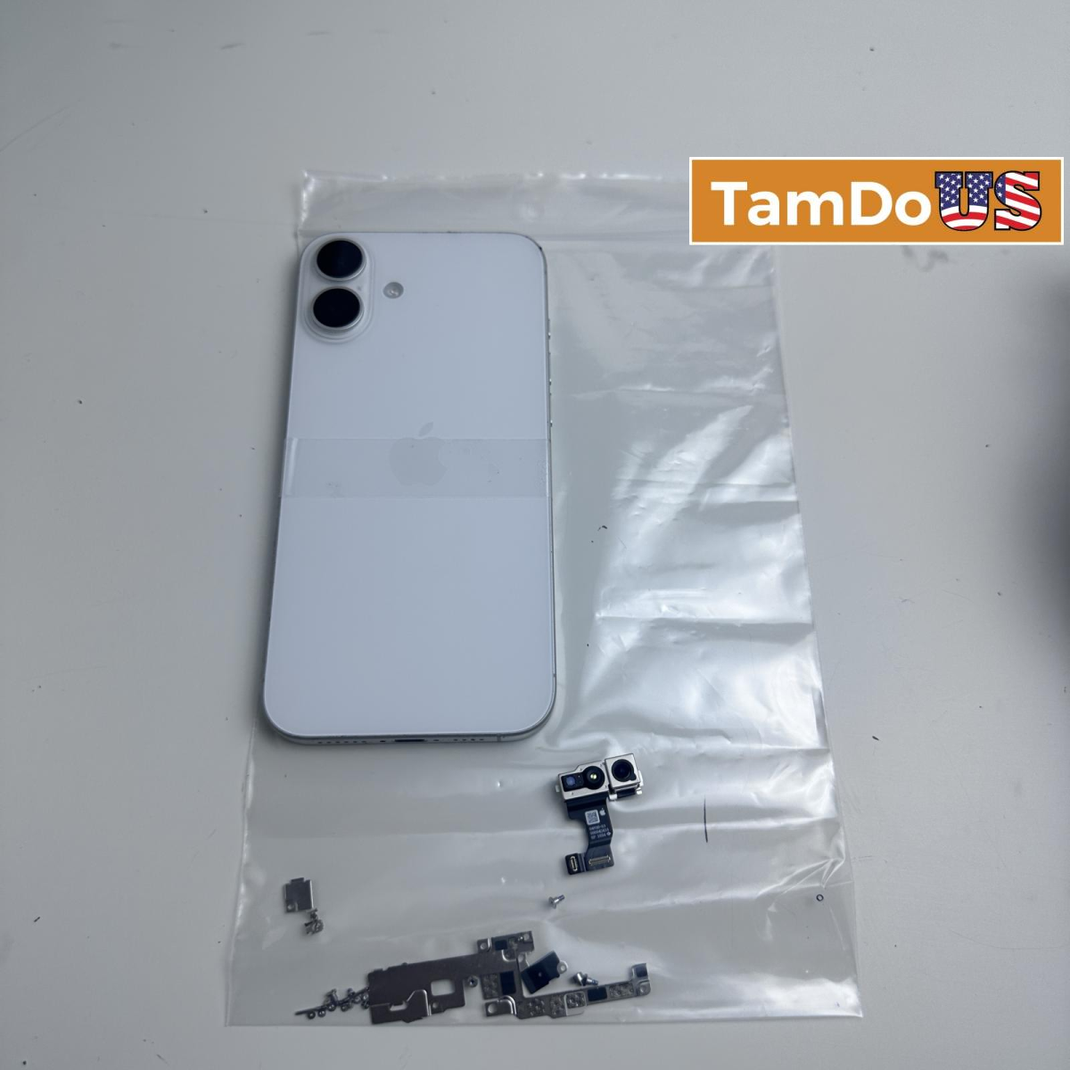 This iPhone 16 Plus Full Replacement Parts Kit is in excellent condition. It includes various parts except the mainboard, pulled from a fully functional device.