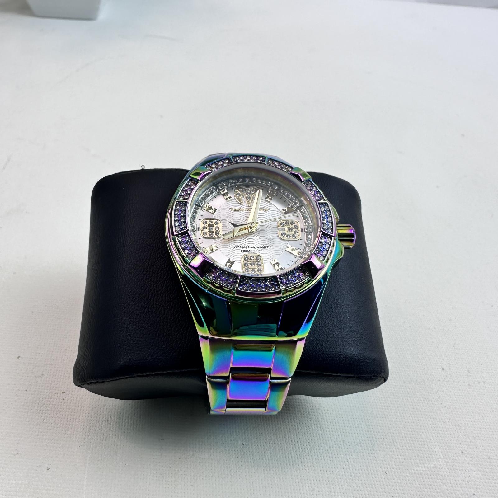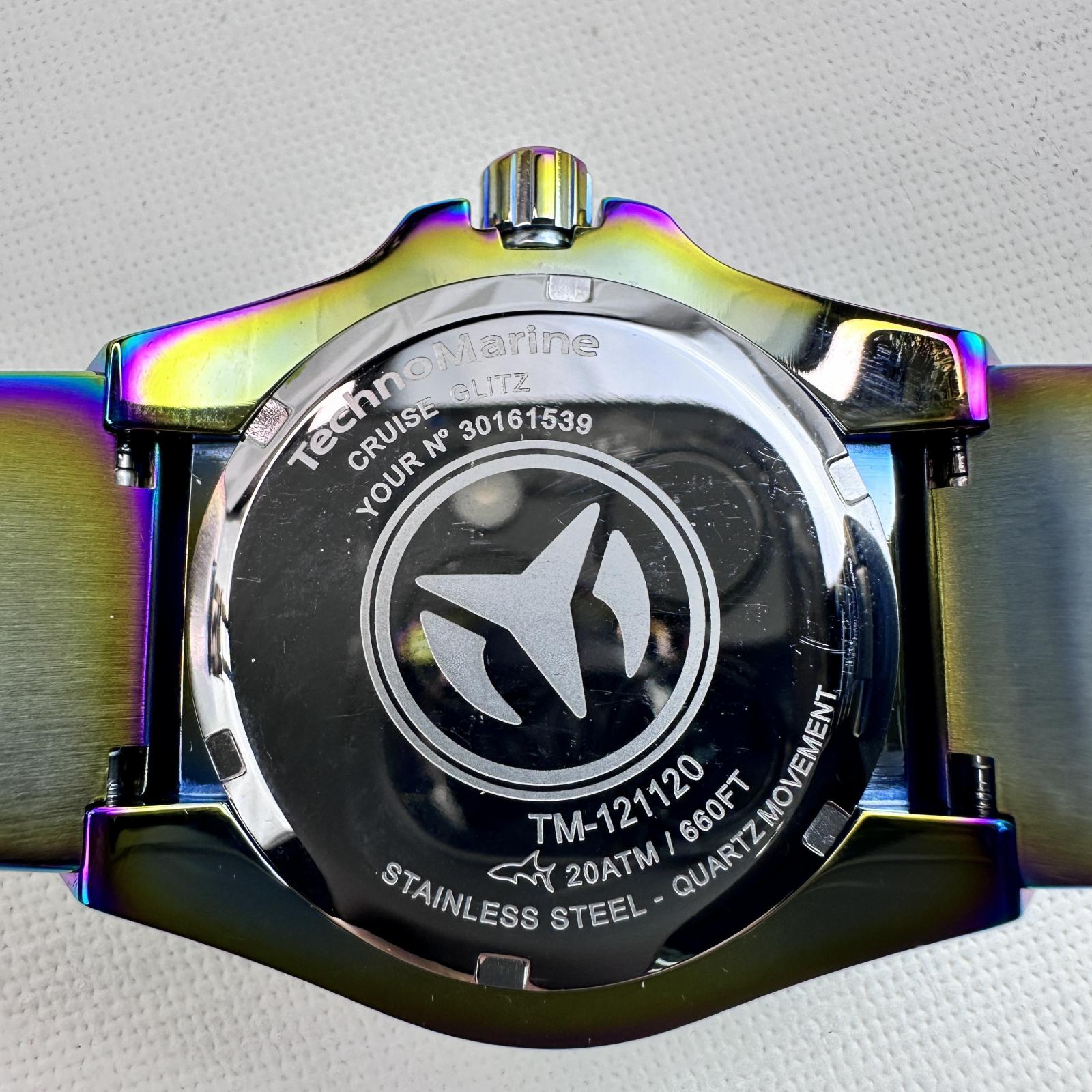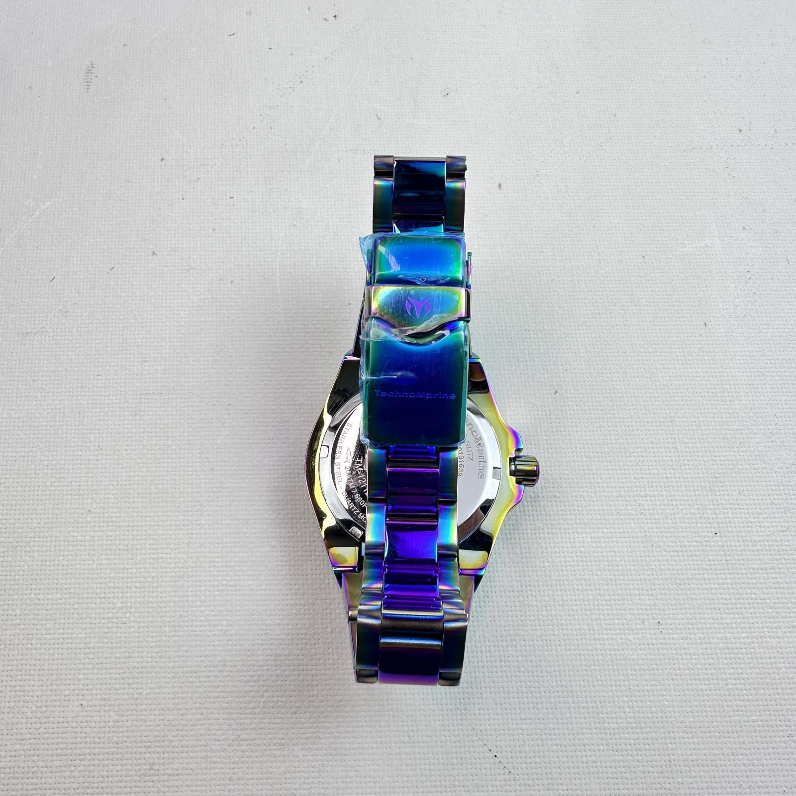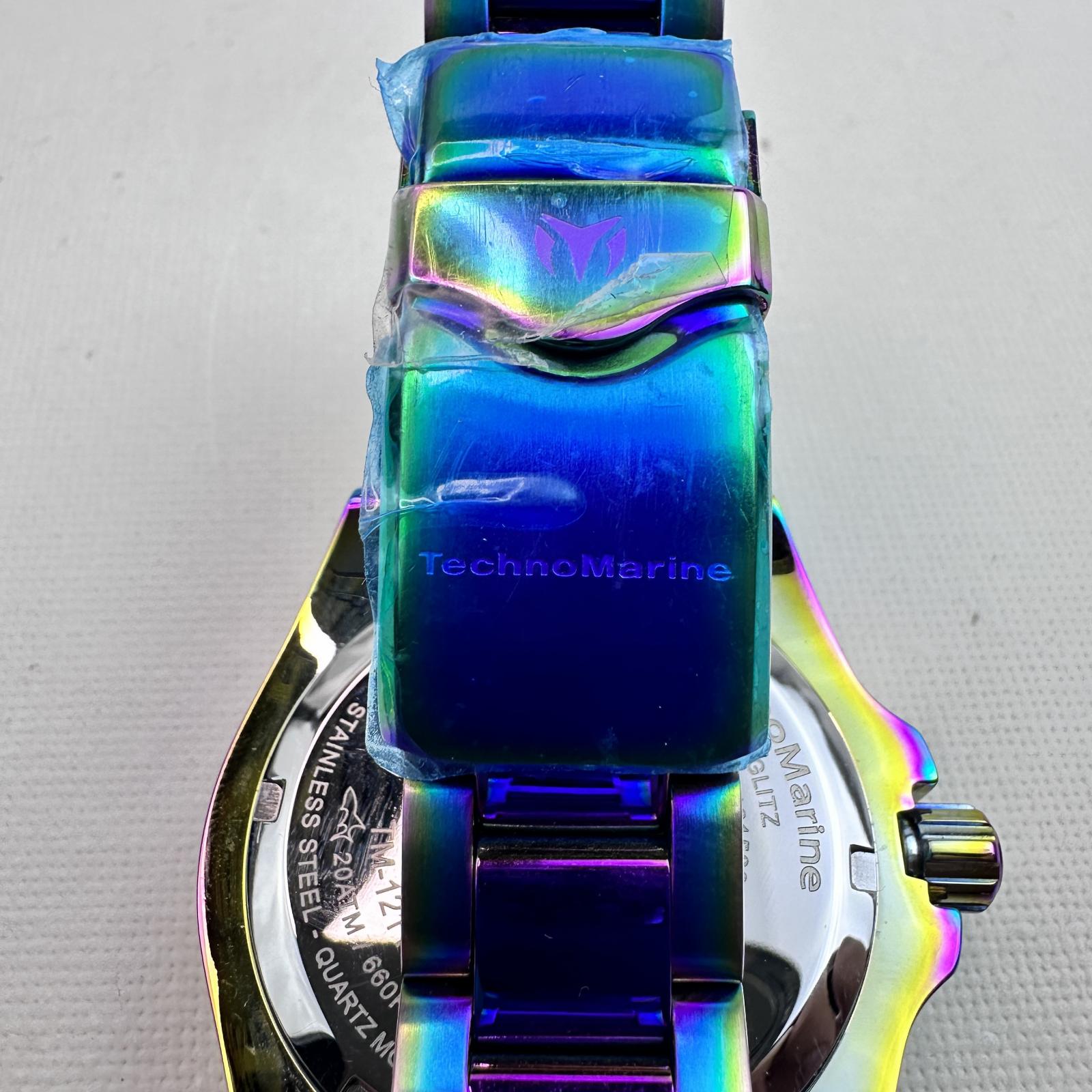 with minor signs of wear. The TechnoMarine Cruise Glitz TM‑121120 is a refined 39-mm women’s timepiece crafted from stainless steel with an iridescent finish.