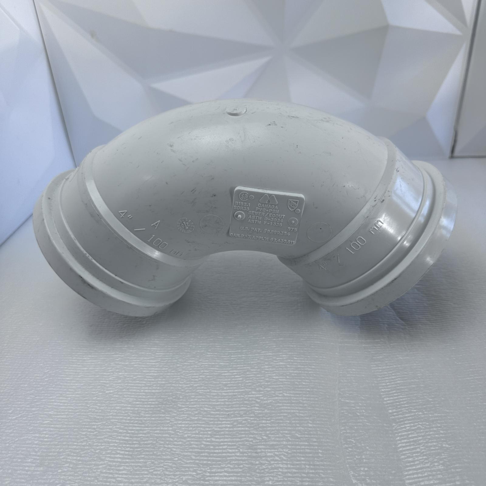 This Canada PVC 90 Degree Elbow is 4 inches and in new open box condition. It may be dusty from storage, so come check it out!
