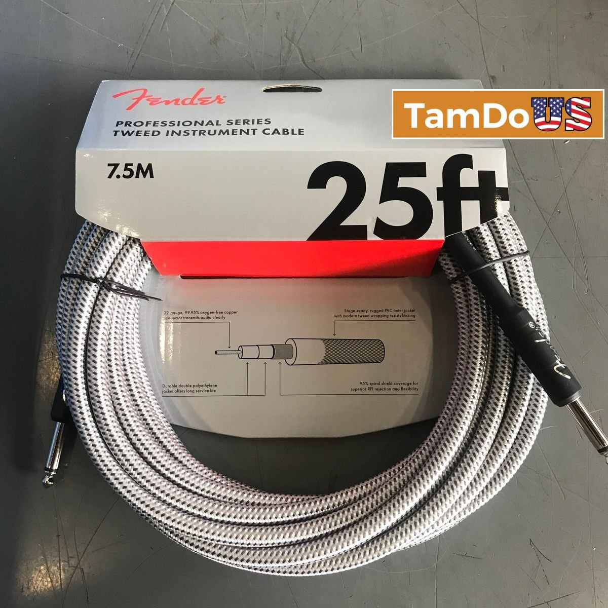 Deliver your tone with style and reliability using the Fender Professional Series Tweed Instrument Cable. This 25-foot (7.5m) cable features a classic White Tweed braided jacket that is both road-reliable and flexible, engineered to avoid twisting and kinking.