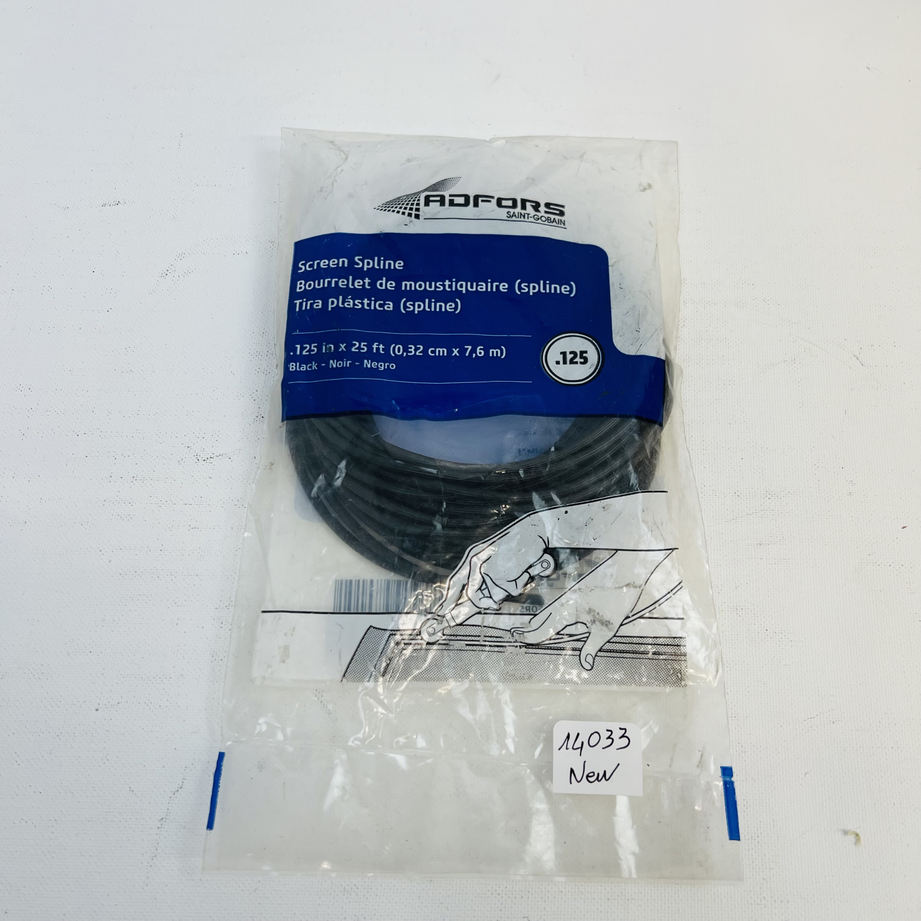 This lot includes 7 pieces of ADFORS screen spline, each measuring .125 in x 25 ft. All items are in new condition, perfect for home improvement projects.