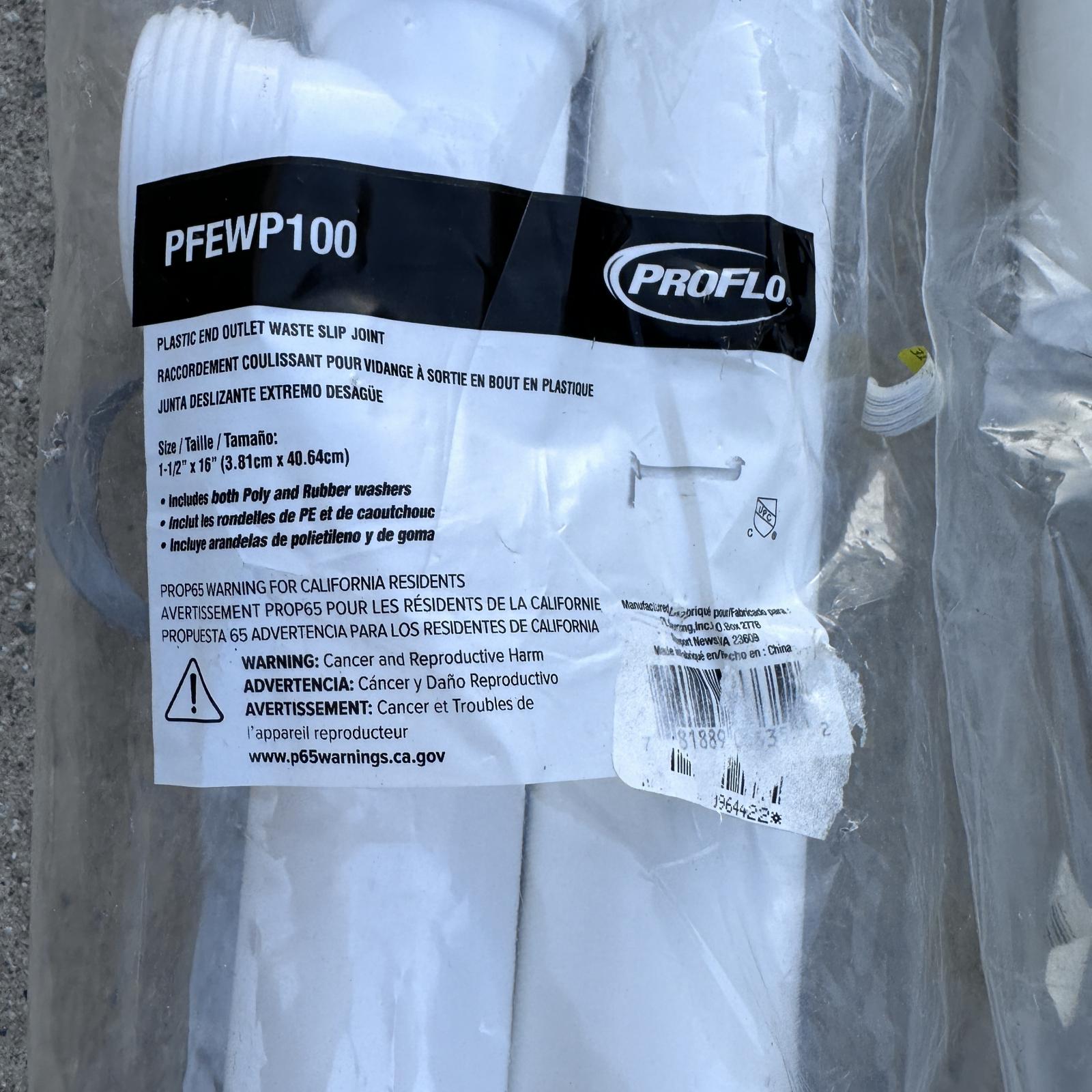 This lot includes 3 PROFLO PFEWP100 End Outlet Waste Slip-Joint pipes, each measuring 1-1/2" x 16". They are in new condition and ready for use.