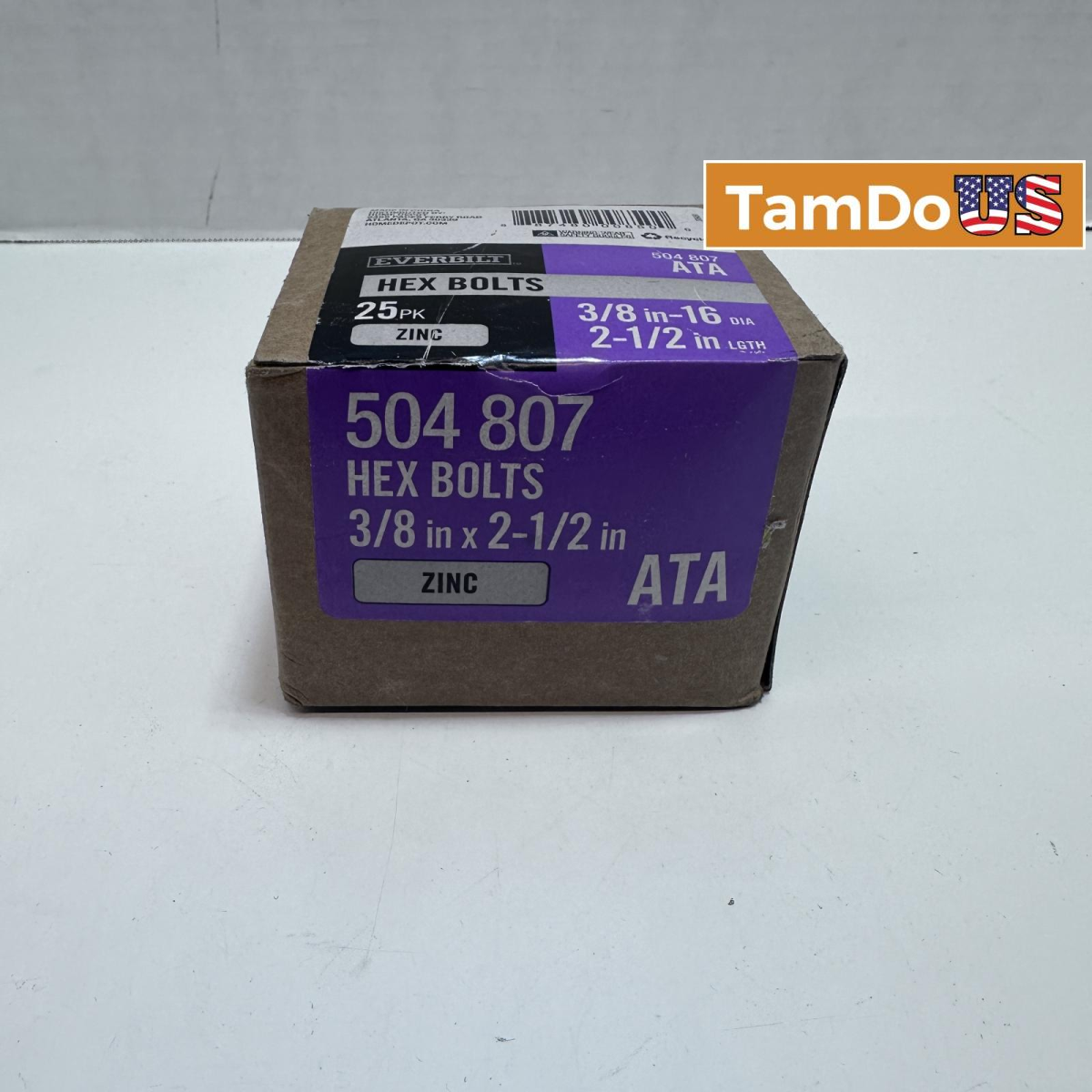 Lot of 3 Everbilt Hex Bolt Zinc 3/8-16 x 2-1/2