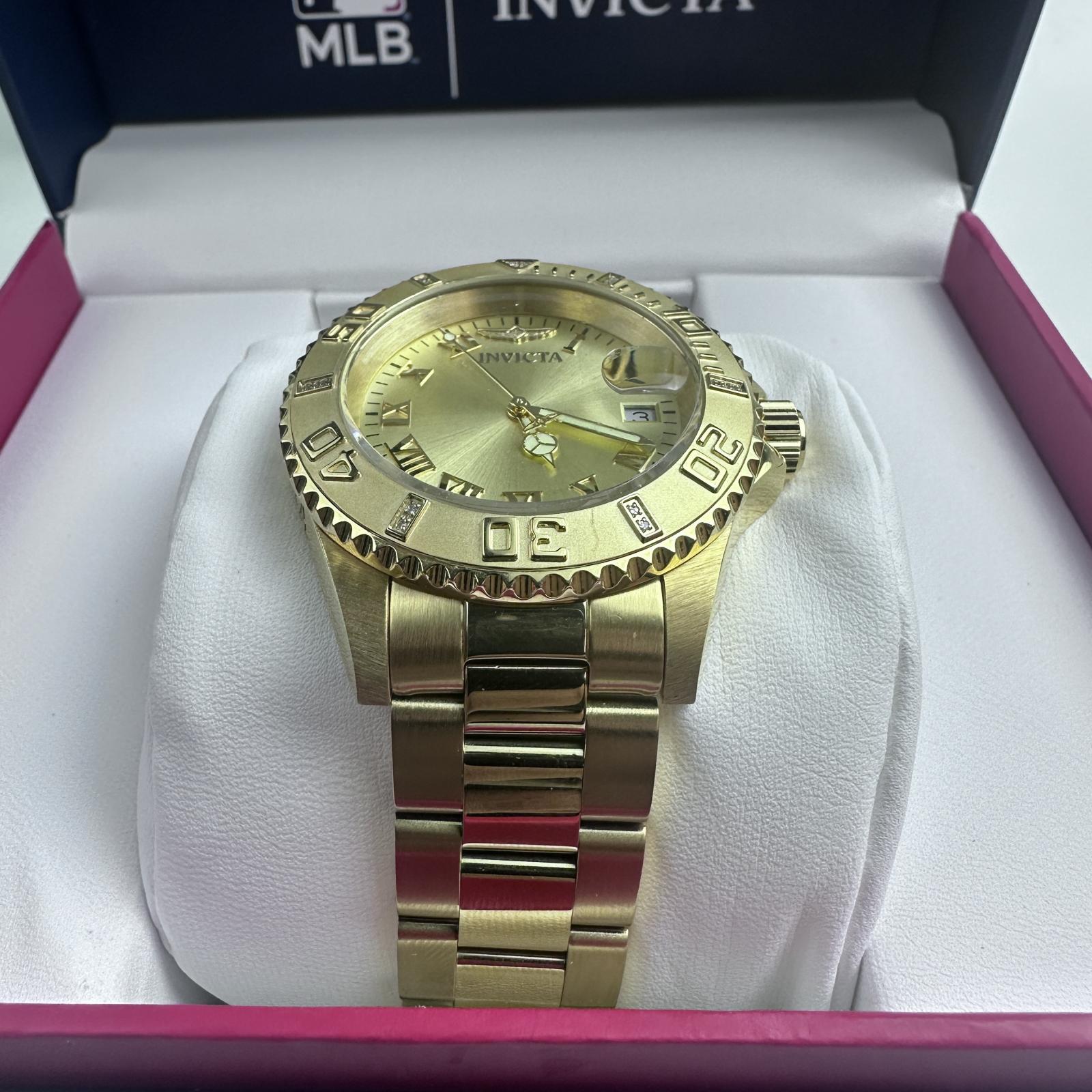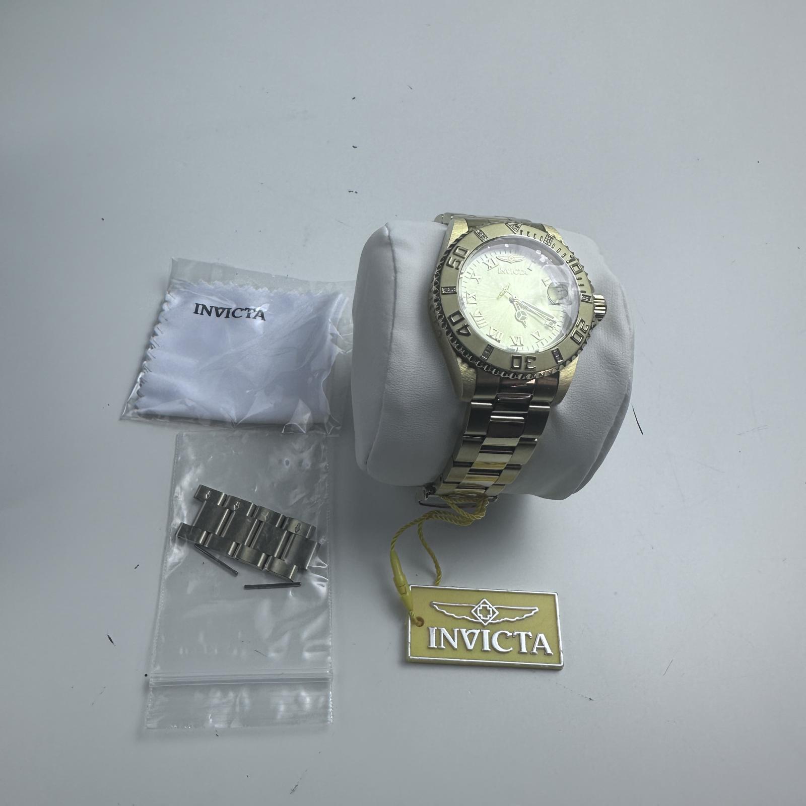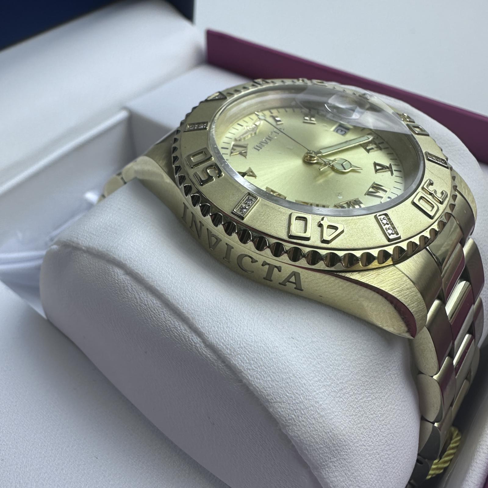 condition Elevate your wristwear collection with the Invicta Pro Diver Men's Watch 12820. This stylish timepiece features a striking gold-tone 40mm stainless steel case and bracelet, radiating sophistication and durability.