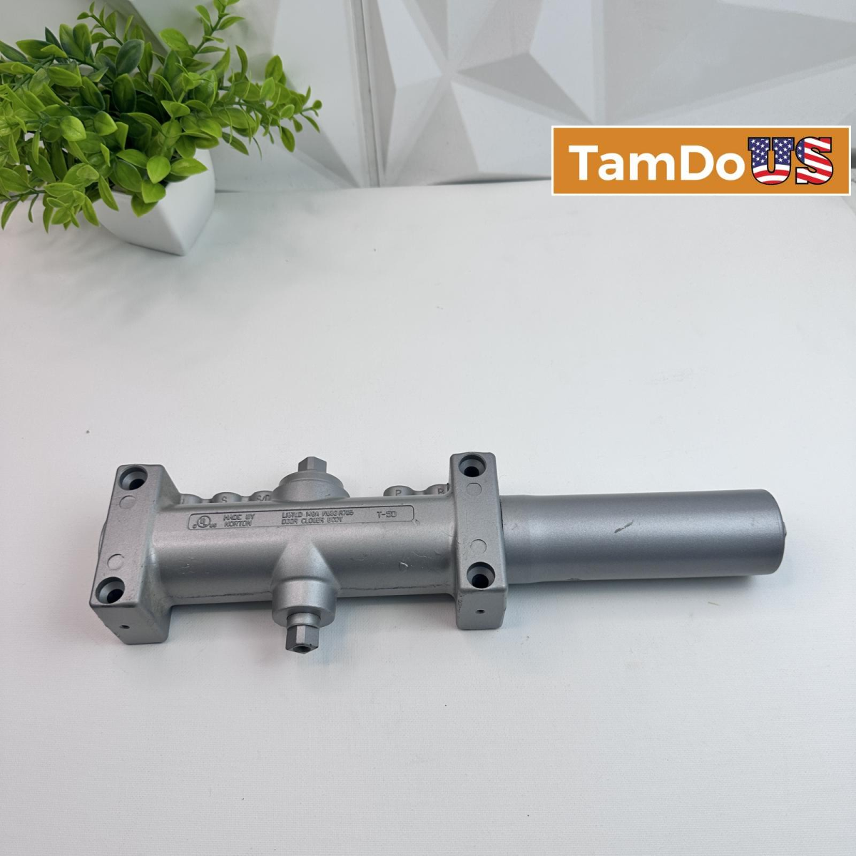 This is a new open box Norton T-50 Door Closer Body, ideal for commercial doors. It features durable aluminum construction and adjustable valves for reliable closing control.
