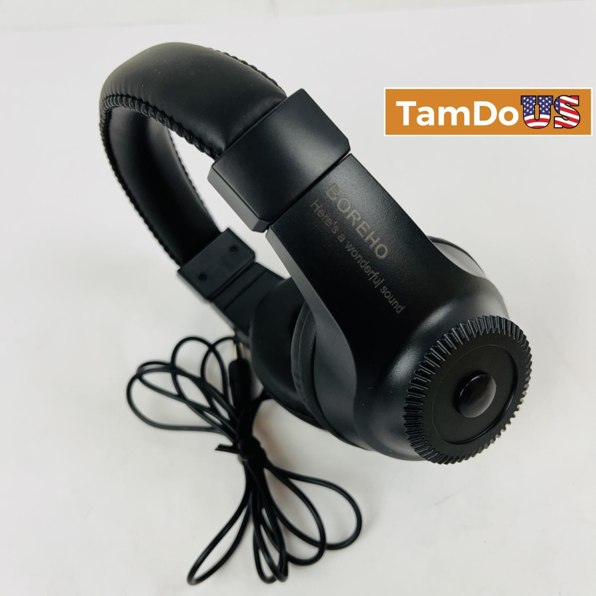 The BOREHO wired over-ear headphones are in excellent condition, featuring a classic black design and comfortable padded ear cushions. They provide clear stereo sound and are compatible with various devices via a standard 3.5mm audio jack.