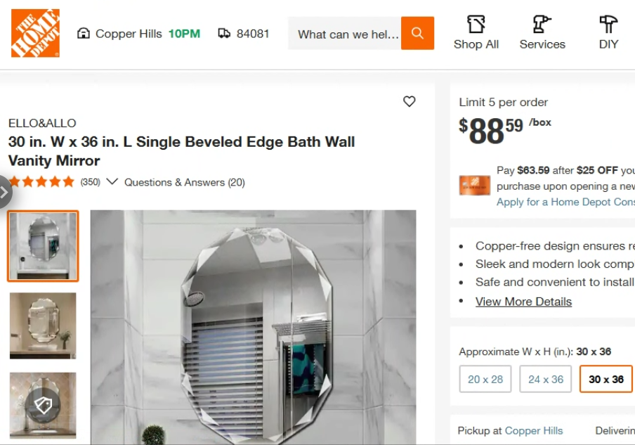 ELLO&ALLO 30 in. W x 36 in. L Single Beveled Edge Bath Wall Vanity Mirror
