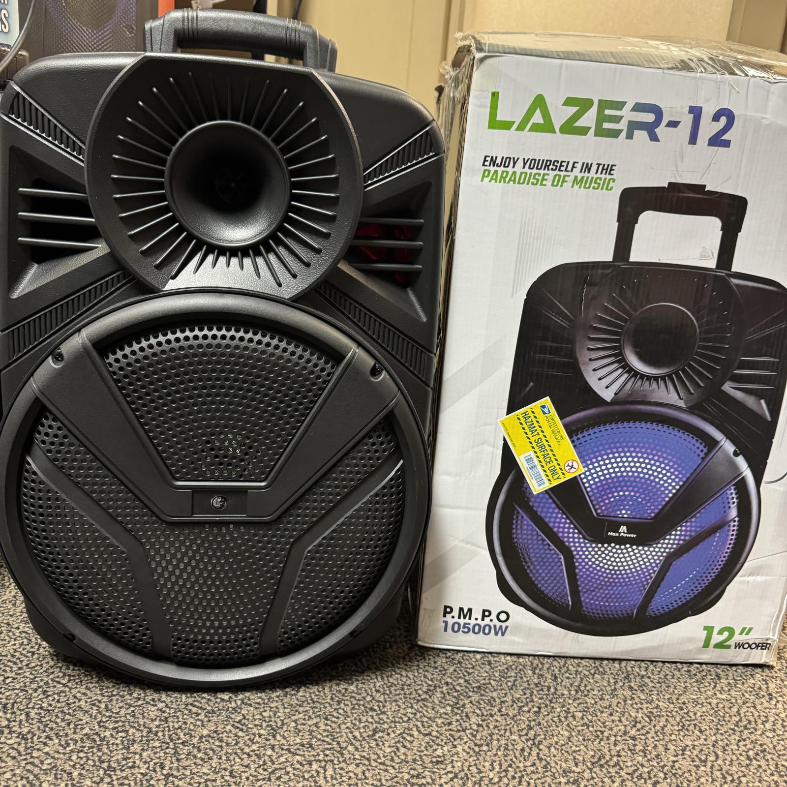 This LAZER-12 Party Speaker features a powerful 12" woofer with a PMPO of 10500W. It is in excellent condition and ready for your next event.