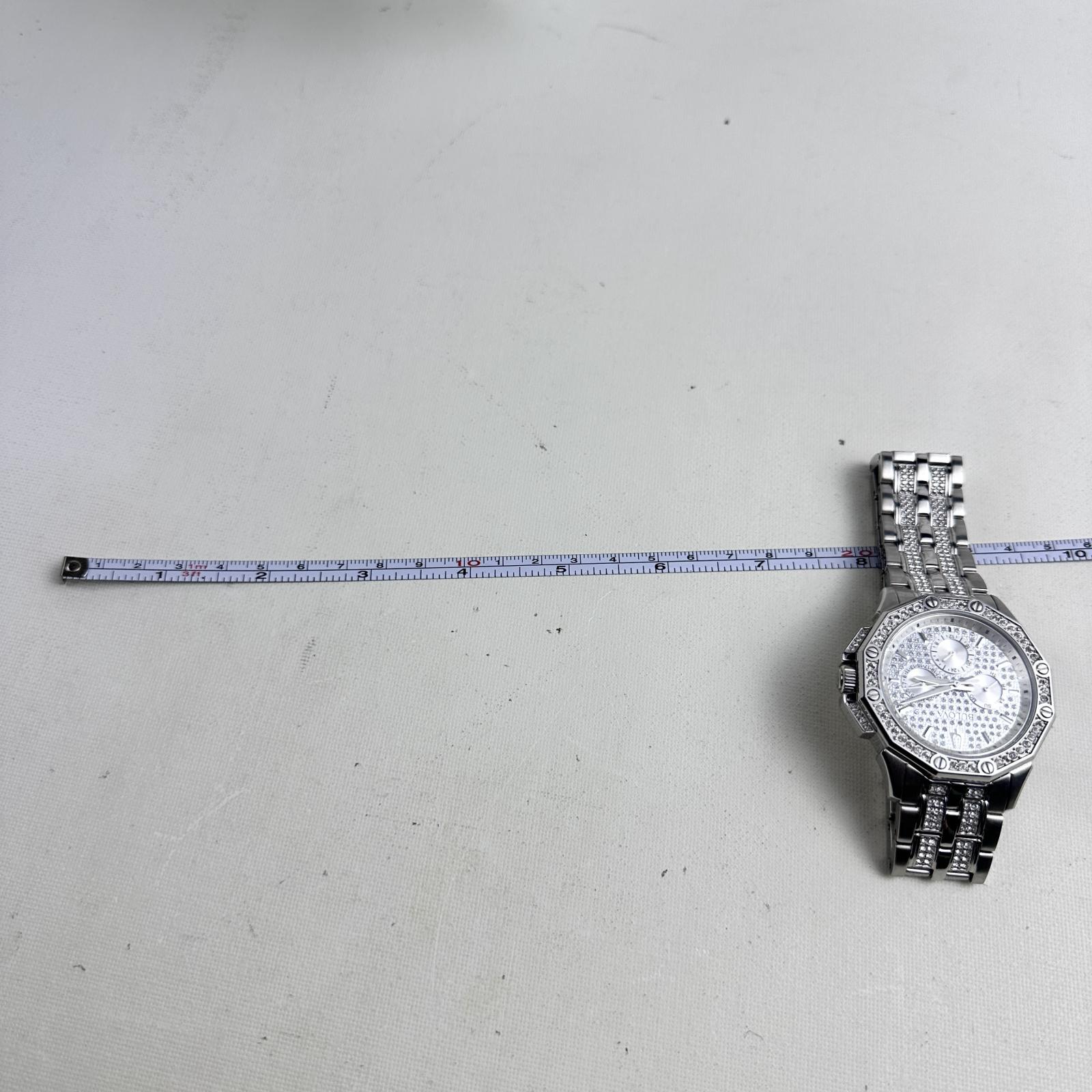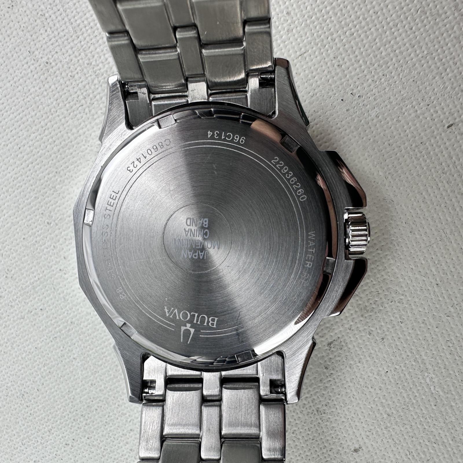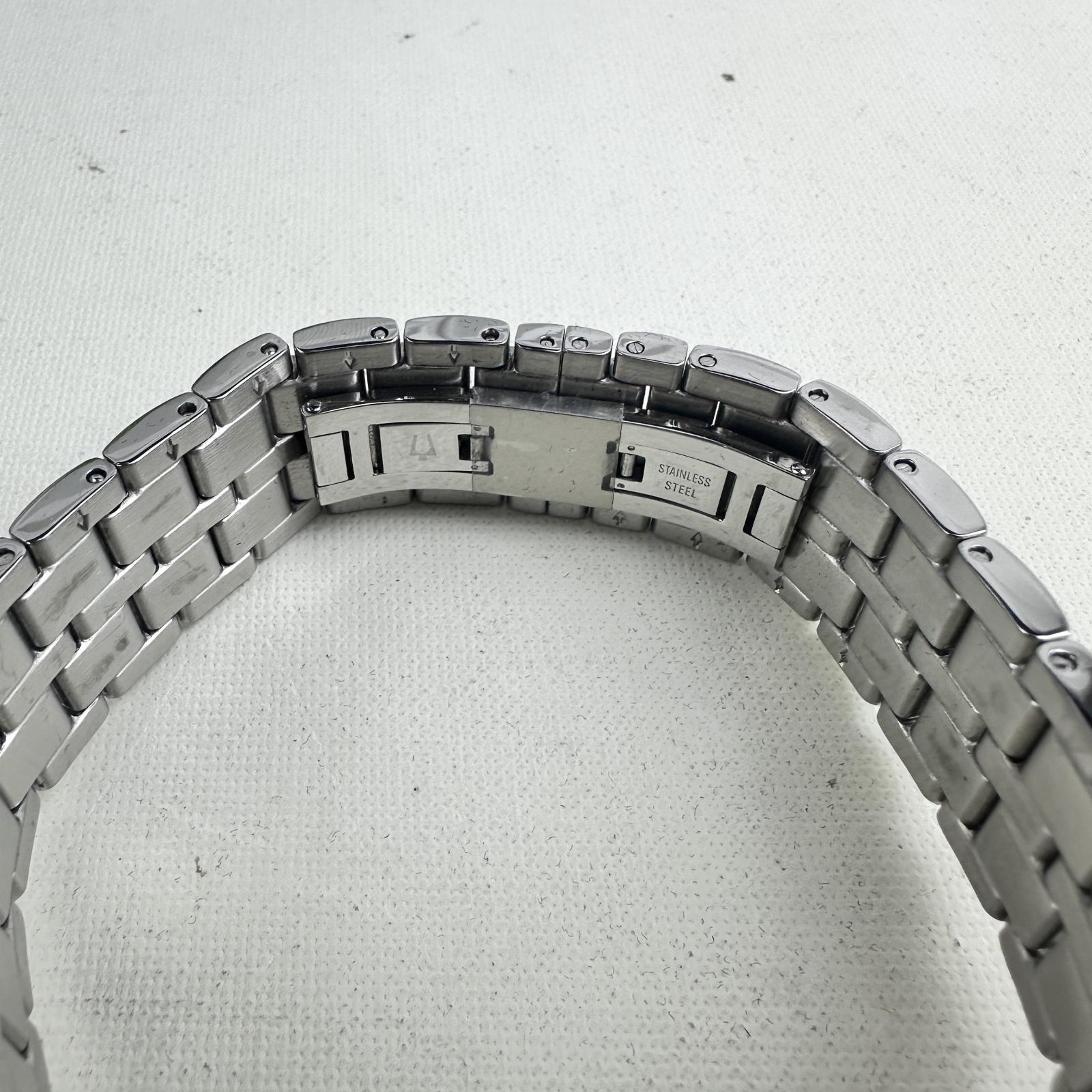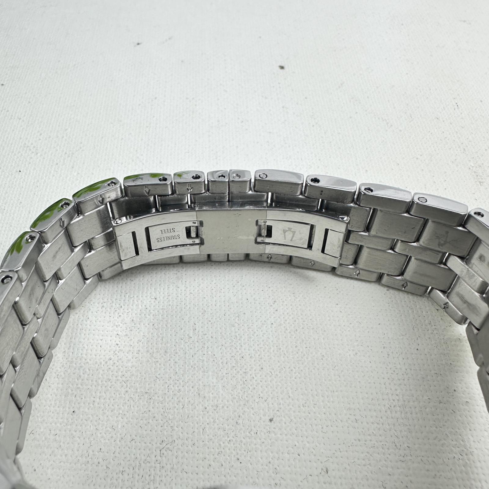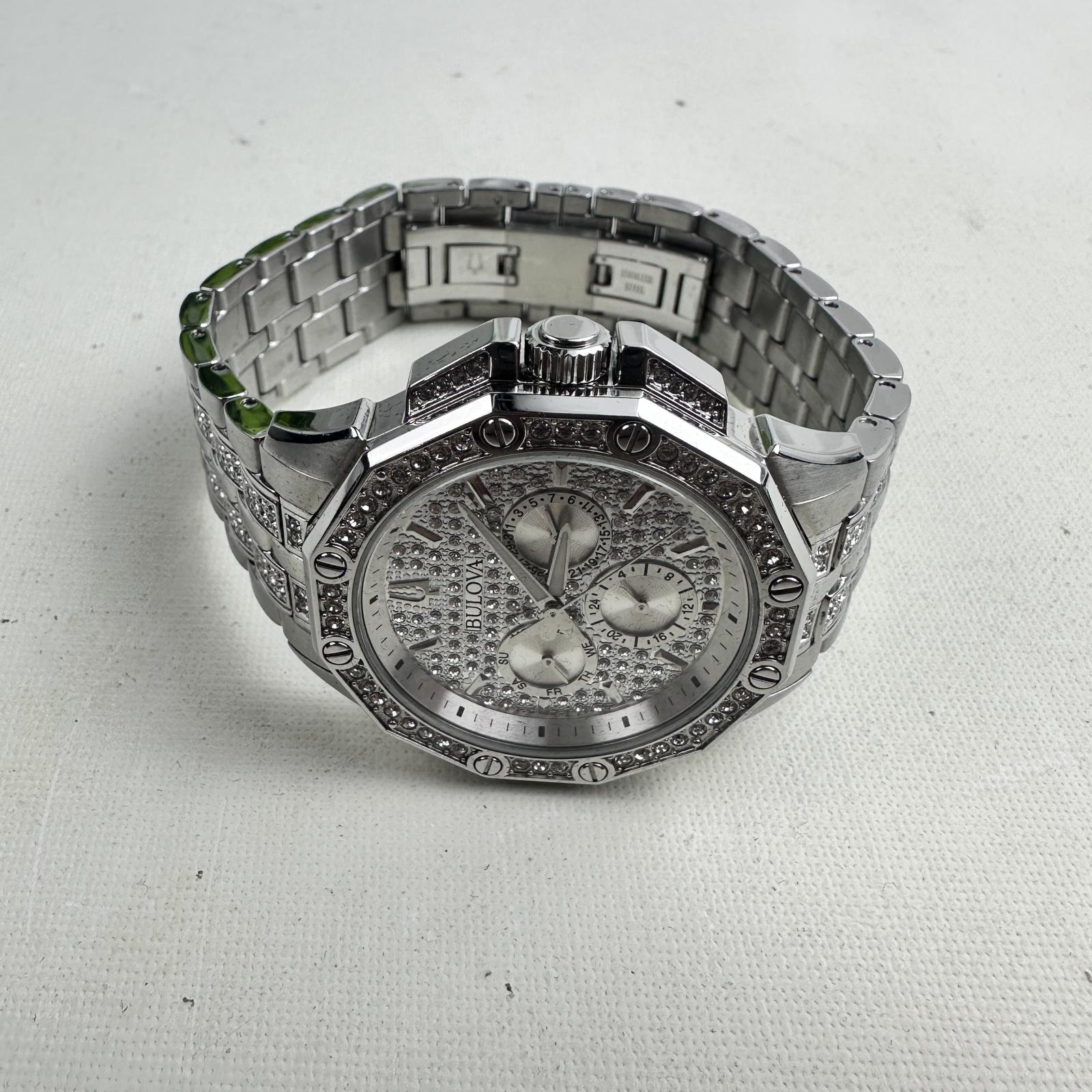 with minor signs of use. Make a bold statement with the Bulova Octava 96C134 men's watch, featuring a 42mm silver-tone stainless steel case and bracelet embellished with over 300 Swarovski crystals.