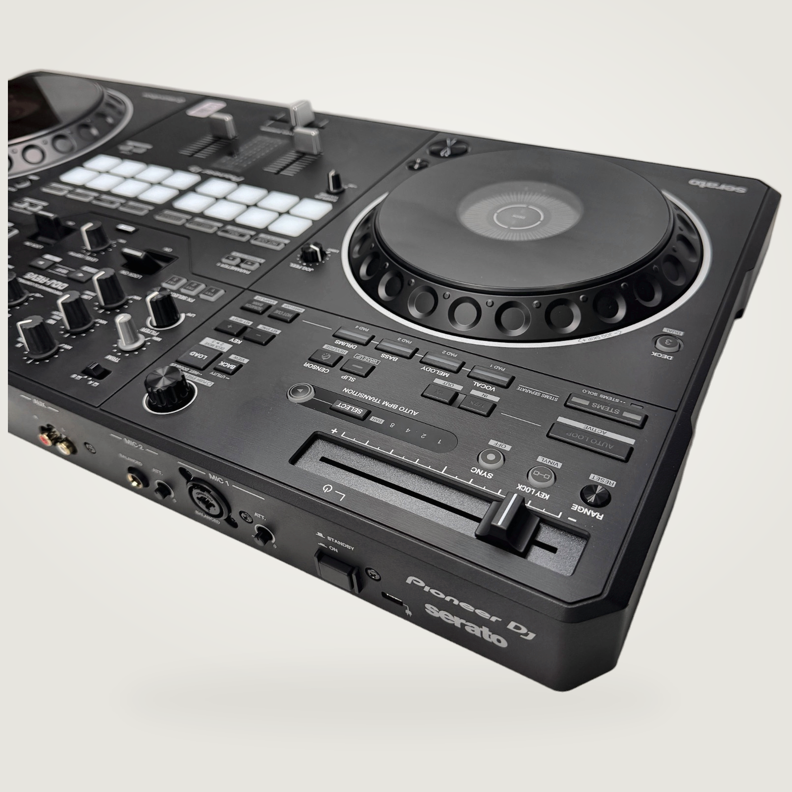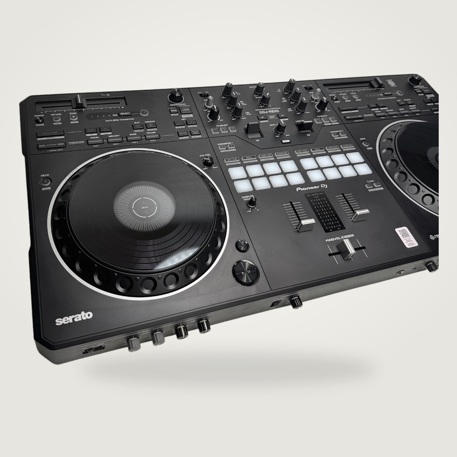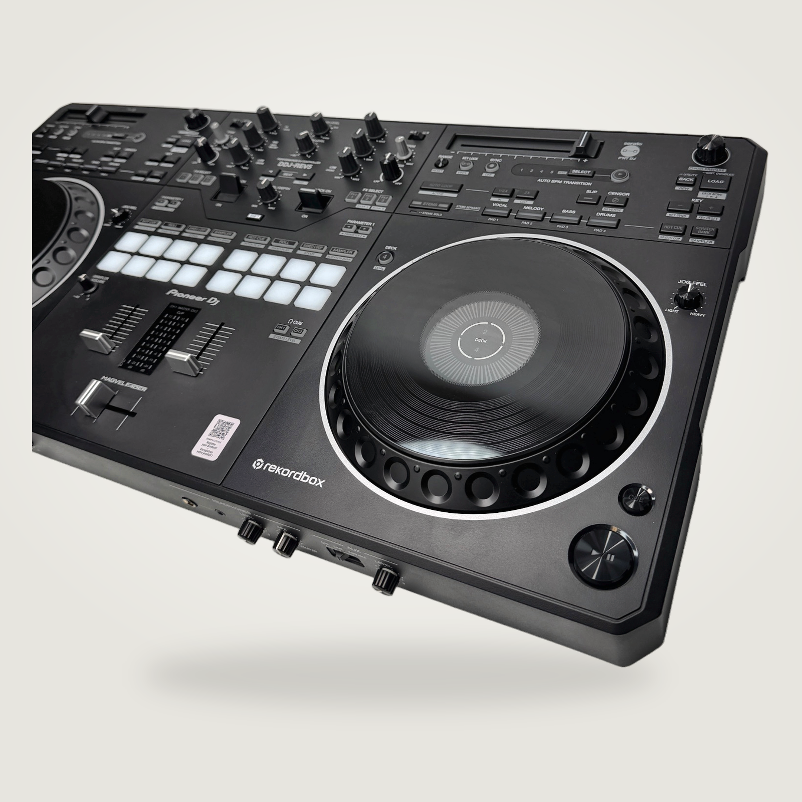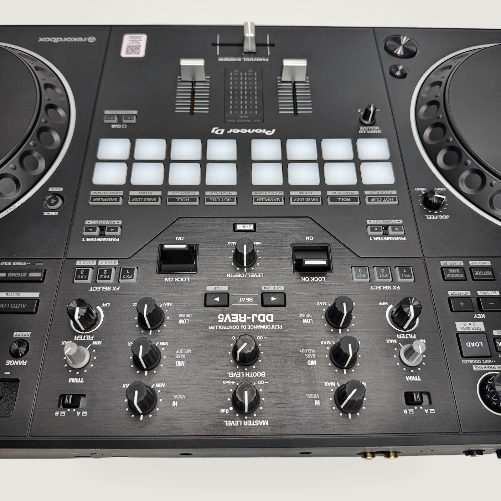 A standout feature is its large jog wheels, which are highly responsive and feel similar to those on the industry-standard CDJ units. The DDJ-REV5 is the first of its kind to include dedicated Stems control buttons, allowing you to easily isolate vocals, drums, or instruments in real-time for creative mashups.