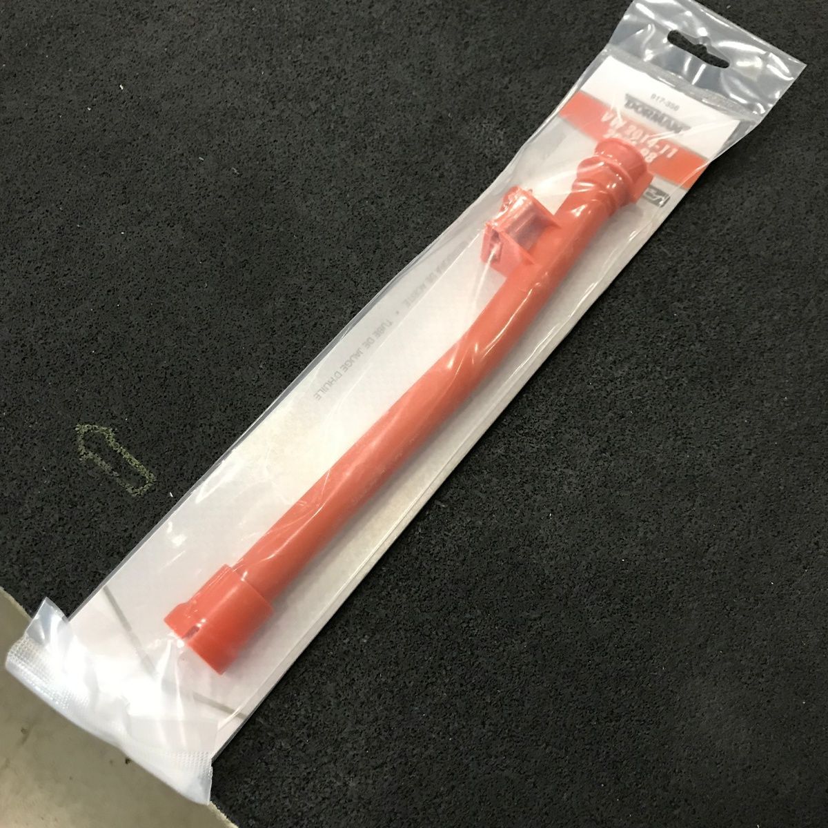 This is a new Dorman 917-356 engine oil dipstick tube made of plastic. Ideal for replacement in various vehicles.