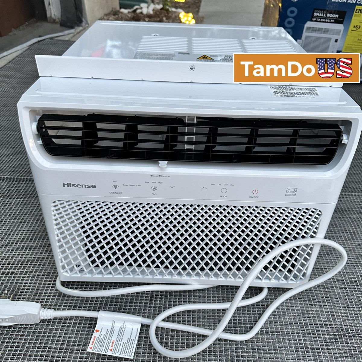 This Hisense 10,000 BTU Window Air Conditioner is in new open box condition. It cools medium-sized rooms up to 450 sq. ft. and includes a remote for easy control.