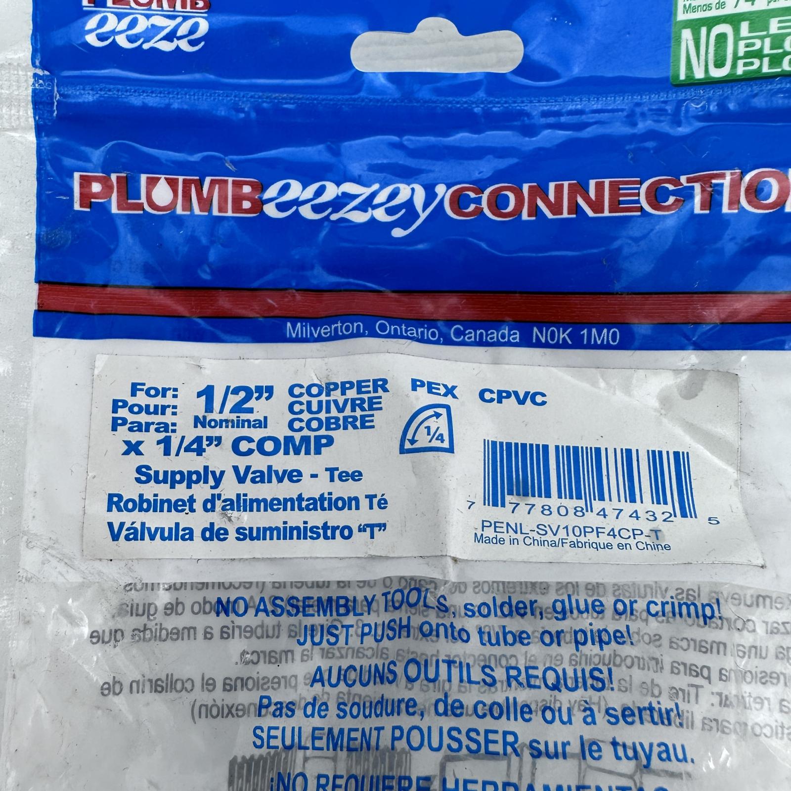 Plumb Eezey Connection 1/2" Copper x 1/4" COMP Supply Valve - Tee