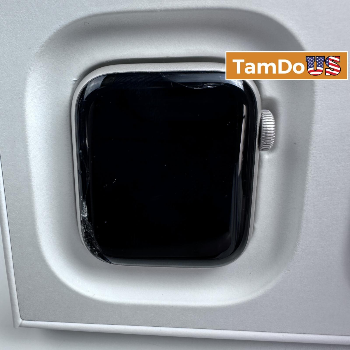 This Apple Watch SE (Gen 2) has a broken glass. It is a cellular model with a 40mm Starlight AL case and Sport Band. Ideal for parts or repair.