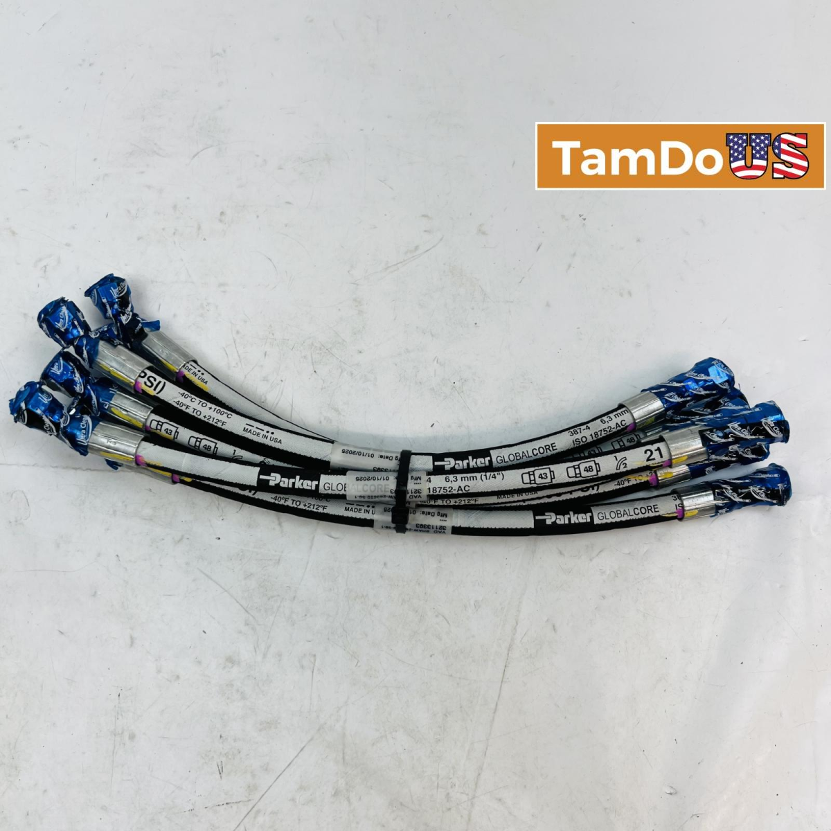 This lot includes 6 new Parker 387-4 hydraulic hose assemblies, each rated for 3000 PSI. Ideal for heavy-duty applications in various industries.