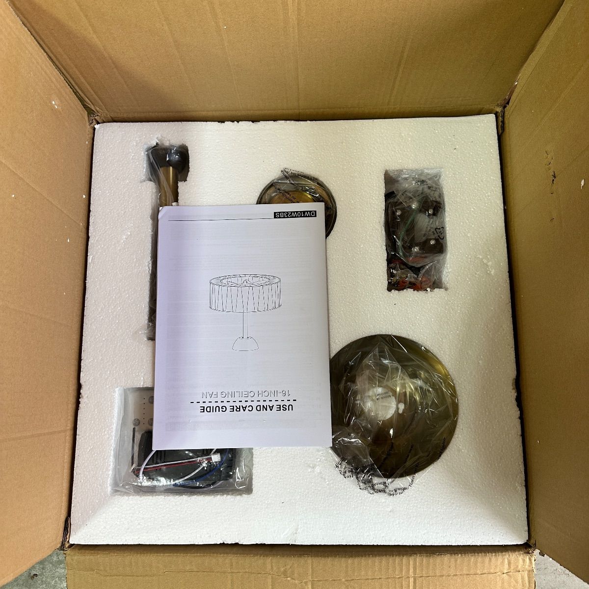 This item is brand new in its original box and includes the complete fan assembly, mounting hardware, and installation instructions. A perfect upgrade for anyone looking to add both style and practicality to their interior environment.