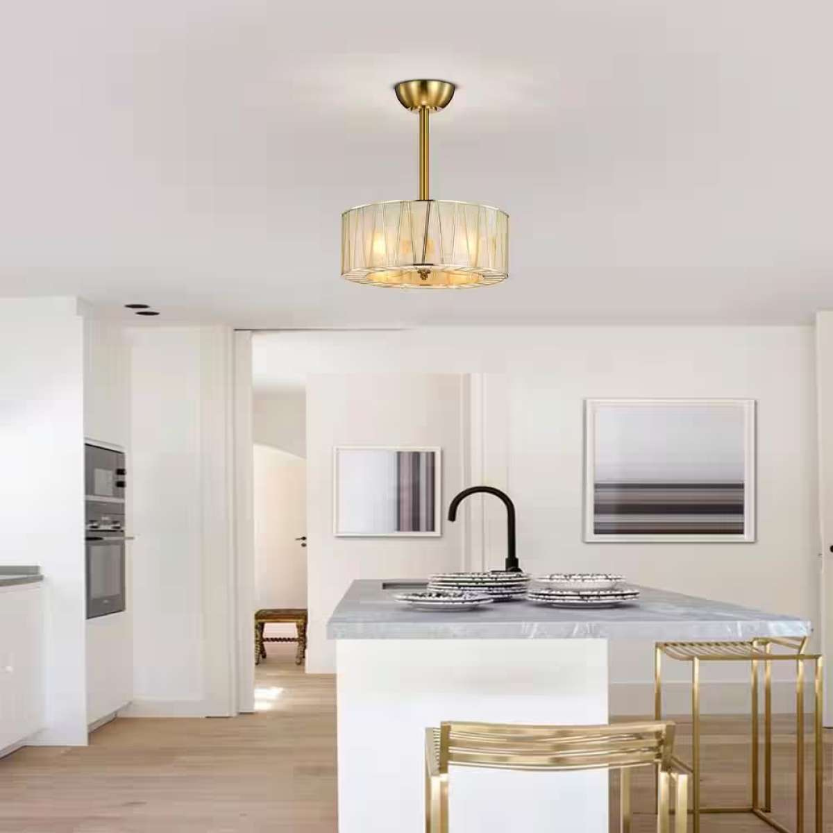 Ideal for bedrooms, dining rooms, living areas, or small commercial spaces, the fan delivers quiet operation and balanced airflow. The open-frame drum shade adds a designer touch that blends well with industrial, farmhouse, and modern décor.