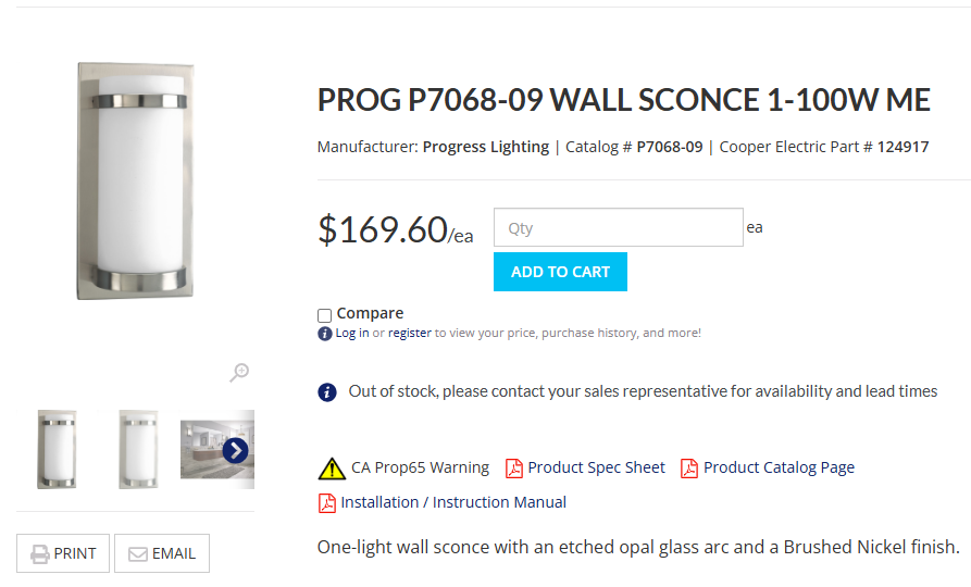 Progress Lighting Wall Sconce P7068-09 Brushed Nickel ADA Compliant