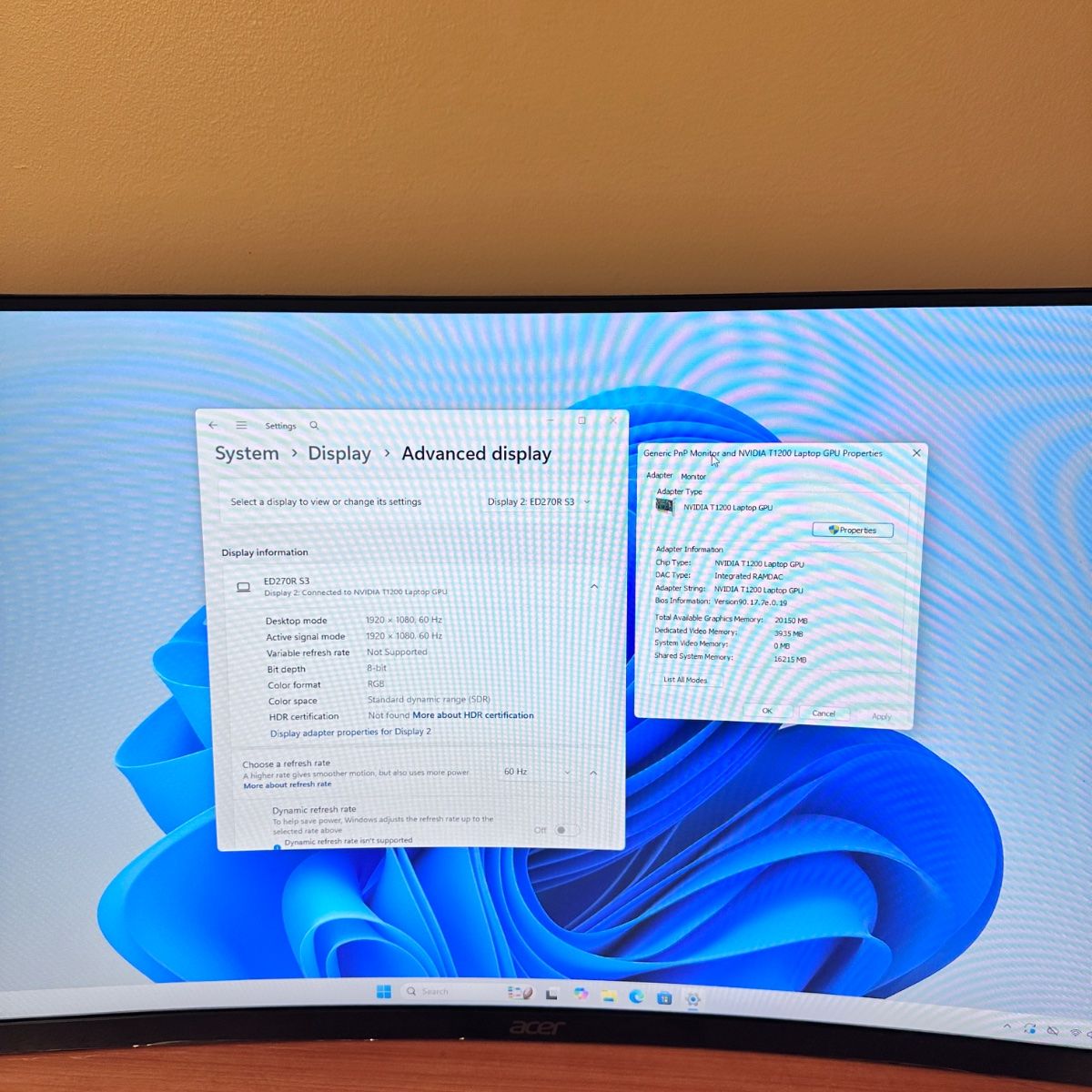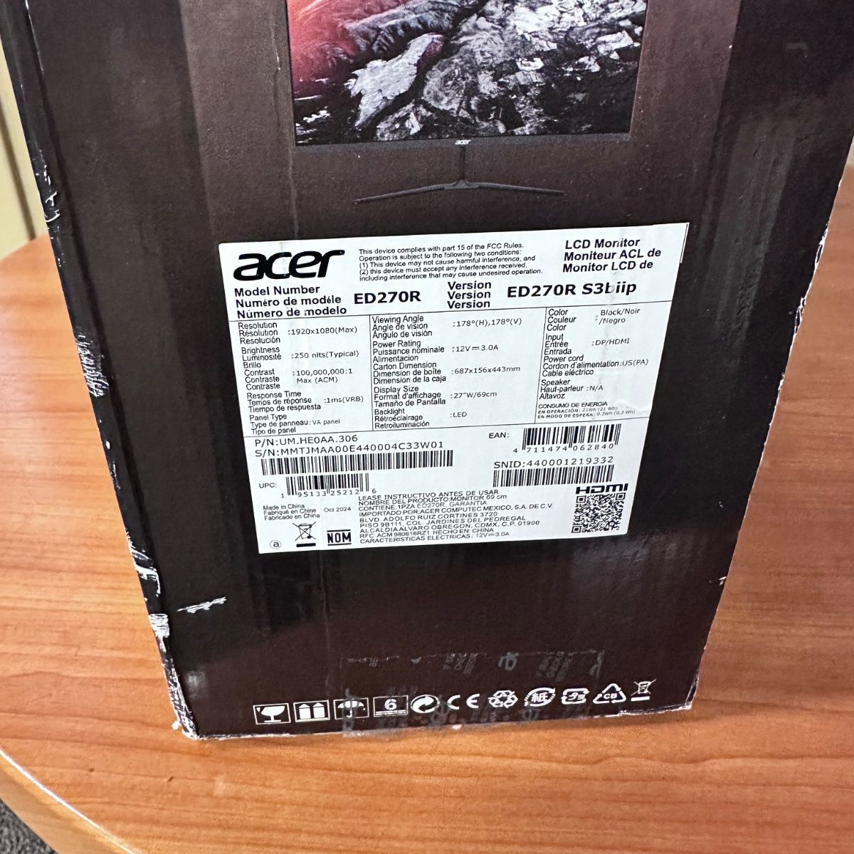 with minor signs of use. The Acer ED270R S3biip is a 27-inch curved LED monitor designed for immersive viewing and smooth performance.