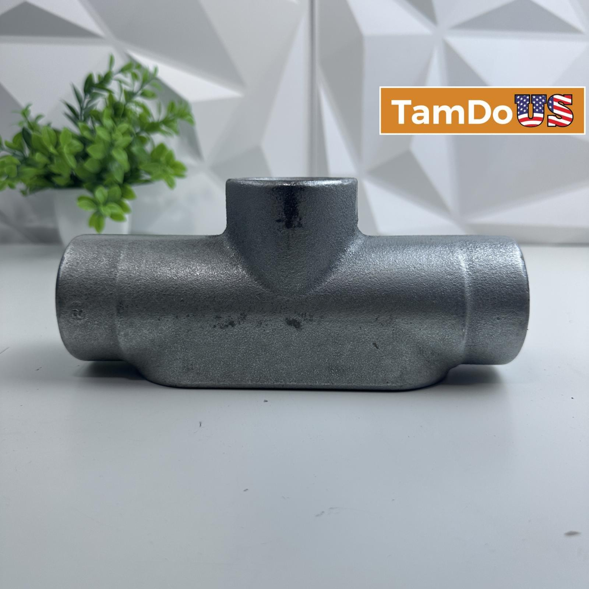 The EATON TB57 is a new 1-1/2" conduit outlet body made of durable aluminum. It features a threaded design for secure installation and is corrosion resistant.