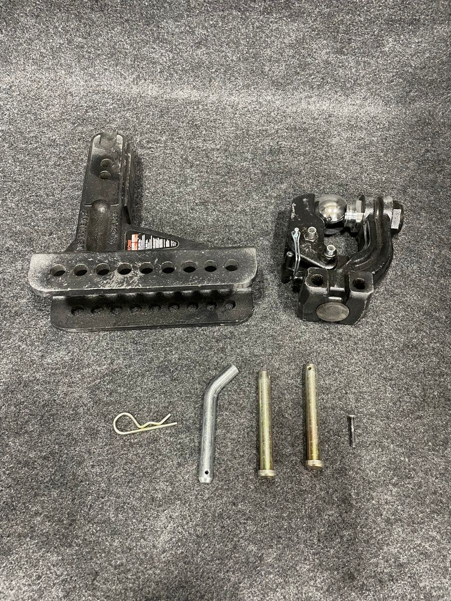 This CURT adjustable trailer hitch can handle up to 20,000 lbs and features a 2-5/16" ball with a 2" receiver. It is in excellent condition and ready for use.