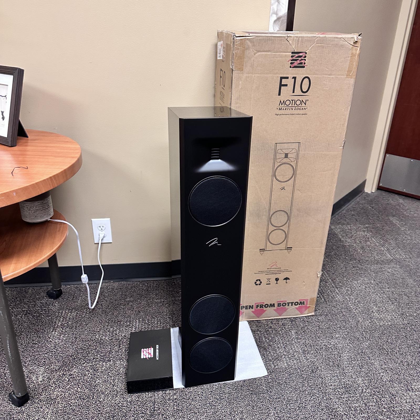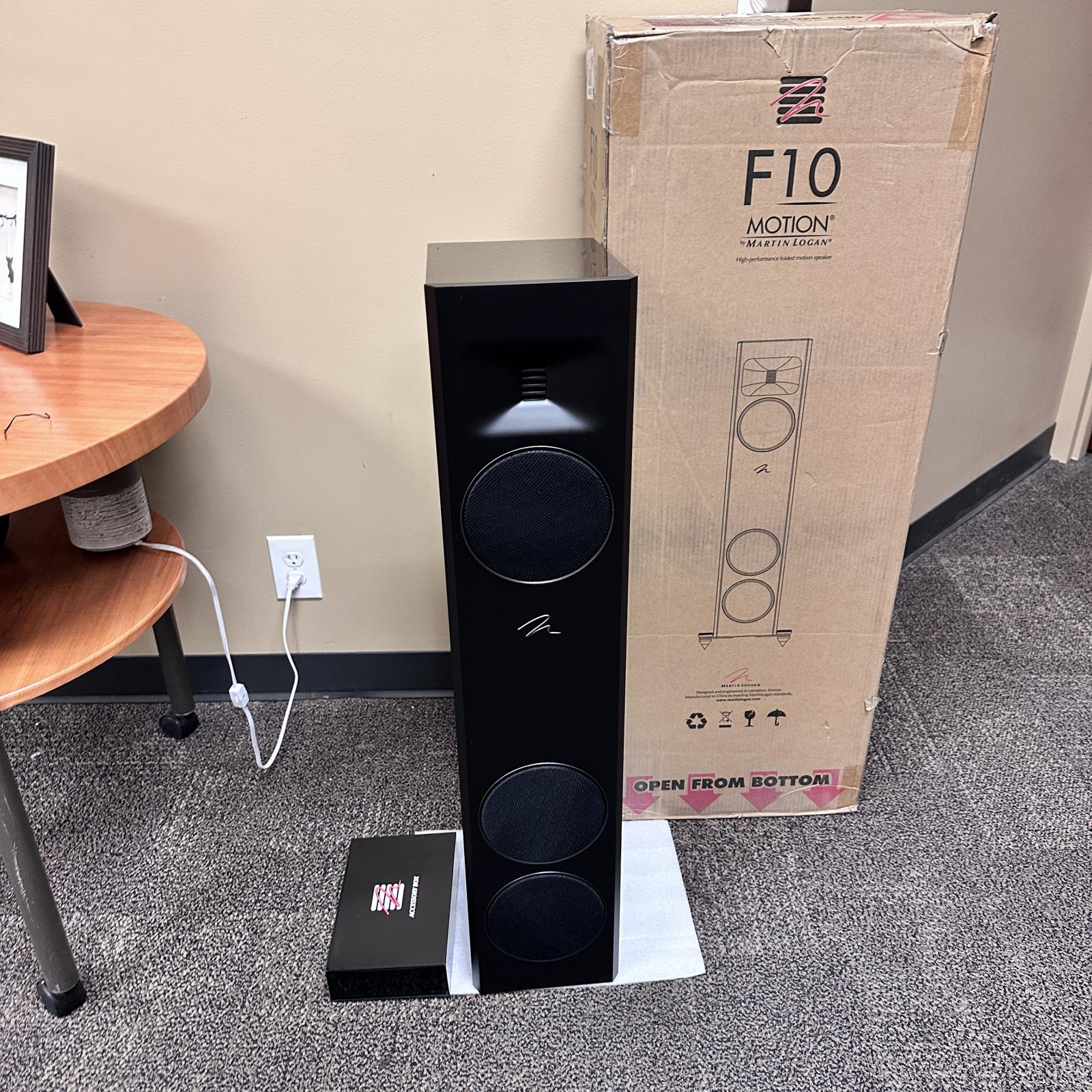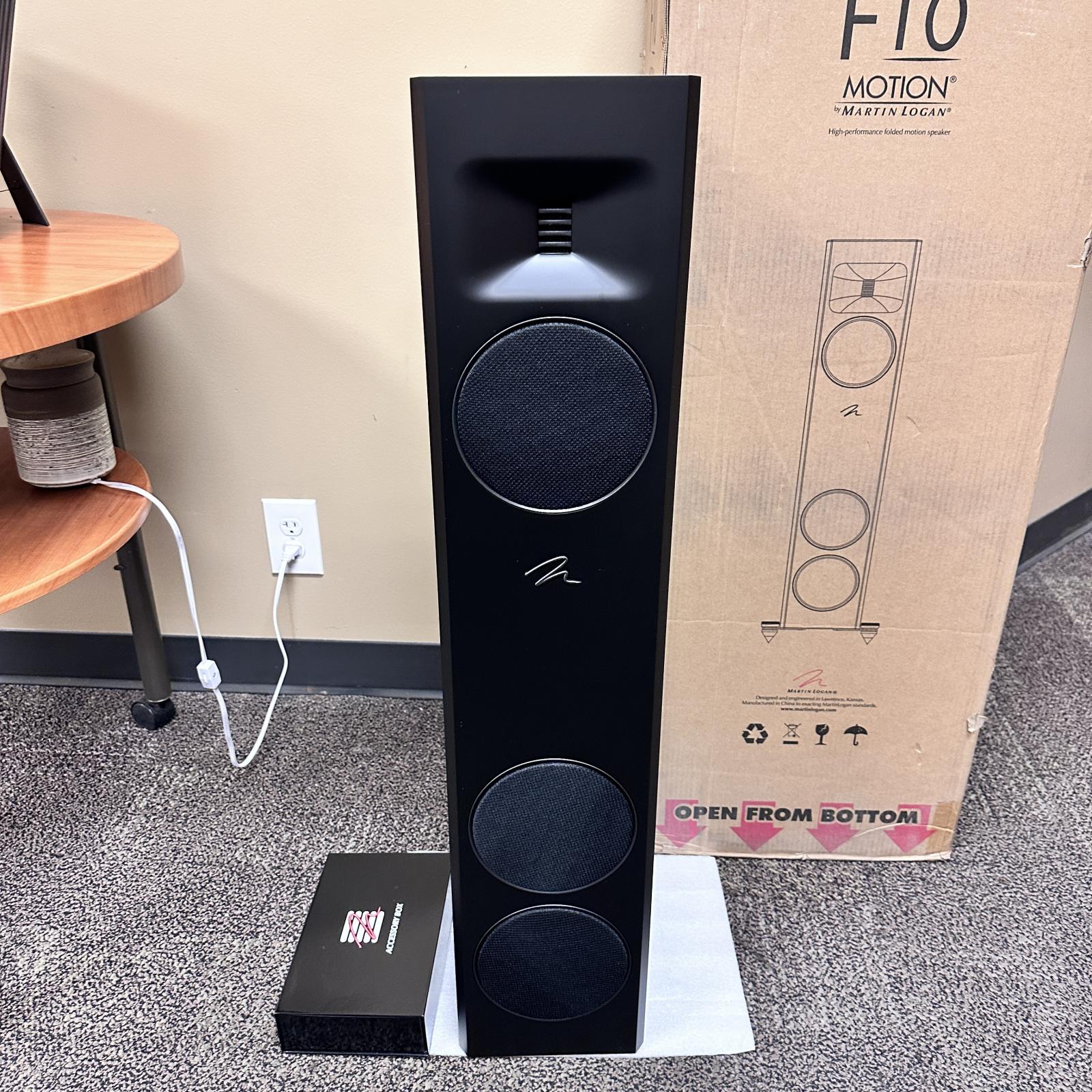 condition Experience breathtaking audio precision and elegant design with the MartinLogan Motion F10 floorstanding speaker. Part of the acclaimed Motion Series , the F10 combines advanced acoustic engineering and luxurious craftsmanship to deliver exceptional sound clarity and depth for both music and movies.